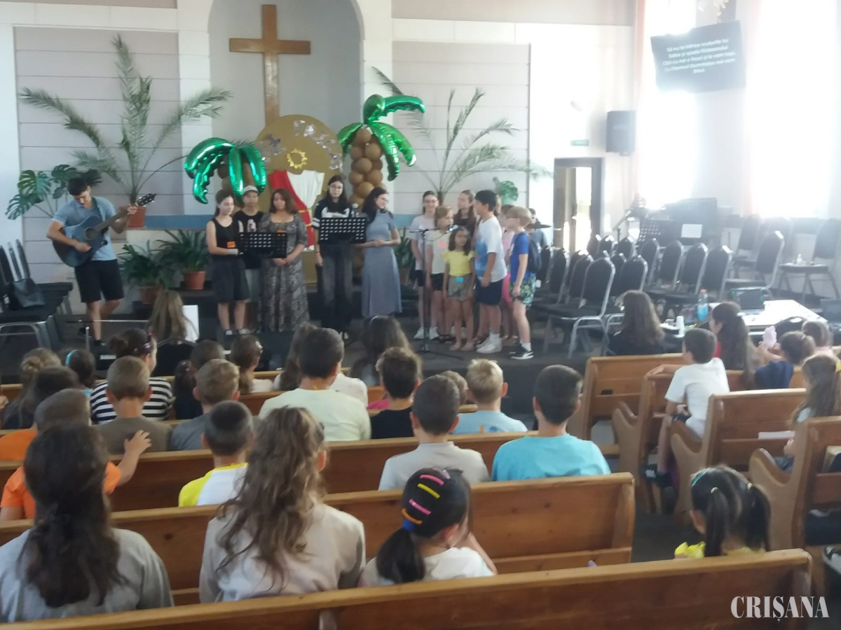 „Începem cu câteva cântări și cu învățarea unui verset biblic, în acord cu tema aleasă pentru ziua respectivă, urmează jocurile pe terenurile sintetice de lângă biserică, unde s-a amplasat și un tobogan gonflabil. Apoi participanții se împart pe grupuri: cei mici sunt la crafturi (atelier de lucru manual), cei mai mari la lecții, sau invers, după care servim o mică gustare cu ei. Programul se încheie cu un set de cântari, recapitulare. Duminică, în biserică copiii vor fi premiați și în fața părinților, bunicilor vor demonstra ce au învățat în aceste zile”, a spus, printre altele, pastorul Opriș.