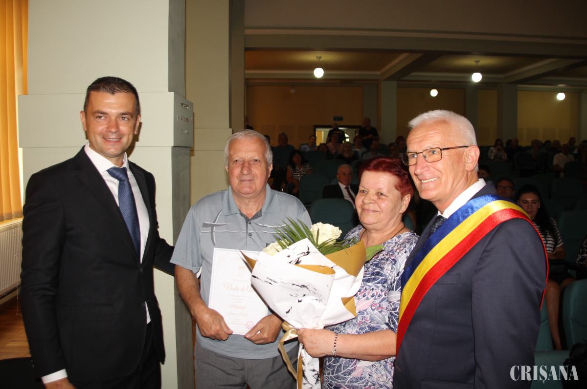 Ședința Festivă a Consiliului Local Ștei a avut loc în sala mare a Casei de Cultură „Miron Pompiliu”, de la ora 12.00, având pe ordinea de zi: cuvântul primarului Iulian Balaj; mesajele către invitați; premierea cuplurilor care au împlinit 50 de ani de căsătorie. Primarul Iulian Balaj, în cuvântul său, a expus multiplele realizări din oraș, unde trebuie specificat că acesta este un adevărat șantier datorită multor, încă, proiecte în derulare, pe lângă celelalte care au fost finalizate, proiecte care fac ca orașul Ștei să aibă un contur clar de standard european. Au mai ținut alocuțiuni: deputata Arina Moș; vicepreședintele CJ Bihor, Horea Florian Abrudan; primarul municipiului Oradea, Florin Birta; primarul orașului Hajdudorog, Zoltan Horvath; reprezentantul delegației județului Prahova, Marin Văcărelu; primarul comunei Giroc, județul Timiș, Dan Vârtosu; președintele Asociației „Bihorenii din Banat”, Mircea Bota. Au participat atât oameni din mediul de afaceri, cât și din cel politic, printre care am remarcat prezența fostului senator Cornel Popa, un adevărat prieten al șteienilor; senatorul Gheorghe Bota; deputatul Arina Moș; primarul municipiului Oradea, Florin Birta; directorul AFIR Bihor, Cristian Buzlea; consilierul județean Cristian Mihuța. De asemenea, au dat curs invitației primarii și viceprimarii din orașele și comunele învecinate. Au fost felicitate și premiate cele 12 cupluri – Bodea Viorel și Elena Victoria, Corda Niculae și Maria, Dale Traian și Maria, Gavrilă Cornel și Mărioara, Matica Aurel Vasile și Rafila, Mîndruț Ioan și Elena, Petruse Sabin și Lenuța, Popa Ioan și Catița, Pătroi Gheorghe și Paulina, Suciu Văleanu și Maria, Tirla Adam Gheorghe și Ecaterina, Tudoran Ioan și Ana Maria, care și-au sărbătorit „Nunta de Aur”.