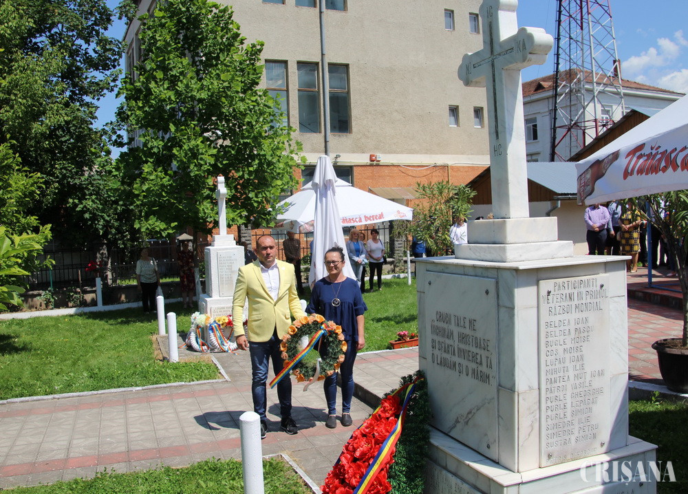 Celebrată în fiecare an, Ziua Eroilor a avut parte de această dată de reguli mai stricte din cauza situației pandemice, chiar dacă restricțiile sunt un pic mai lejere. Organizatorii acestui deosebit eveniment derulat la poalele Munților Apuseni au luat toate măsurile necesare paentru buna desfășurare a unor momente pline de emoție, dar și de o încărcătură istorică aparte din viața comunității. Evenimentul, al cărui moderator a fost eleva din clasa a X-a D de la CN „Avram Iancu” Ștei, Giulia Crișan, s-a derulat în curtea bisericii din centrul orașului și a debutat cu Imnul Național, al Europei și cel al Eroilor, după care preoții locali, Gheorghe Tal și Adrian Suciu, au oficiat o slujbă de pomenire, pentru a cinsti memoria eroilor căzuți pe câmpurile de luptă pentru credință, întregirea și libertatea neamului. Din partea autorităţilor locale a participat ec. Marius Cioară, viceprimarul oraşului Ştei, precum şi câţiva consilieri locali, în timp ce Consiliul Județean Bihor a fost reprezentat de consilierul județean Dorin Boca. Moderatorul evenimentului a urat bun venit tuturor participanților și a dat cuvântul viceprimarului orașului Ștei, ec. Marius Cioară, după care prof. de istorie de la CN „Avram Iancu”, Mihaela Zaha, a vorbit despre semnificația acestei zile deosebite din viața poporului nostru. Elevii de la instituțiile de învățământ din oraș au pregătit și susținut un program artistic, primii fiind „prichindeii” de la GPP, coordonați de prof. Lucreția Cearnău, directoarea instituției, după care au urmat elevii de la Școala Gimnazială „Miron Pompiliu”, coordonați de prof. Emanuel Coroiu, director și Romulus Fășie, director adjunct. Au urmat elevii de la CN „Avram Iancu” coordonați de profesorii Cristian Andru și Cristian-Petru Gavriș, director, respectiv director adjunct, dar și de elevii de la LT „Unirea”, coordonați de prof. ing. Adrian Gruie, director și prof. Viorica Mone, director adjunct. Elevii „uniriști”, dar și alte câteva persoane, au atras admirația celor prezenți datorită hainelor populare, tradiționale din Depresiunea Beiușului, purtate cu multă grație, dar și respect. Într-un cadru deosebit de solemn, viceprimarul orașului Ștei, ec. Marius Cioară, l-a felicitat pe Ioan Purle (Onița veterinarul) pentru titlul de Cetățean de Onoare post-mortem (conform Hotărârii Nr. 46 a CL Ștei din 25 martie 2021) atribuit tatălui acestuia, Alexandru Purle, veteran de război. La ora 12.00, când clopotele au început să bată, s-a păstrat un moment de reculegere, după care s-au depus jerbe și flori, după cum urmează: Primăria și Consiliul Local Ștei; Consiliul Județean Bihor; GPP Ștei; Școala Gimnazială „Miron Pompiliu”; CN „Avram Iancu”; LT „Unirea”; Poliția Orașului; Stația de pompieri; Secția Jandarmi; Spitalul Orășenesc; Solceta S.A; Apia Ștei; SC CERT INVEST SRL; Societatea Băița SA; Banca Cooperatistă „Izvoru” Ștei; Banca Transilvania - Sucursala Ștei, dar și două formațiuni politice, PNL Ștei și PSD Ștei. Începută și sfârșită într-un mod deosebit de sobru, ceremonia s-a constituit într-un moment aparte pentru aducere de dovezi ale recunoștinței pentru jertfa supremă a străbunilor, dar și laude de către cei prezenți, care au marcat, sub Apuseni, așa cum se cuvine această zi din viața poporului nostru.