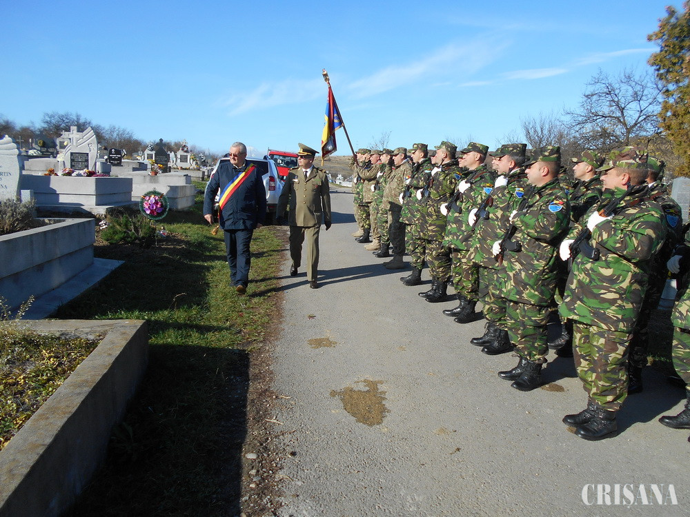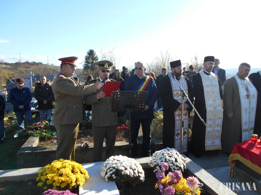 În cadrul ceremoniei a vorbit şi Ioan Todoca primarul orașului Aleșd, care a transmis condoleanțe familiei veșnic îndurerate. Un moment emoționant l-a reprezentat festivitatea de depunere a coroanelor la mormântul eroului. Pe fondul muzical „Presărați pe-a lor morminte” au depus coroane Garnizoana Oradea, Primăria orașului Aleșd, UM 02000 Buzău cu locație Oradea, Colegiul Tehnic „Alexandru Roman” Aleșd, Asociația militarilor veterani și a militarilor cu dizabilități. Ceremonia s-a încheiat cu defilarea detașamentului de onoare.