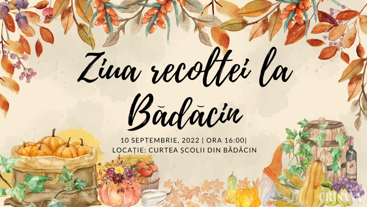 „Ziua recoltei la Bădăcin” (Sălaj) va fi organizată sub forma unui târg de produse agricole şi culinare oferite de localnici, în cadrul unui eveniment din care nu vor lipsi numeroase momente artistice tradiţionale, cântece şi dansuri populare, ateliere pentru copii, tombole etc.