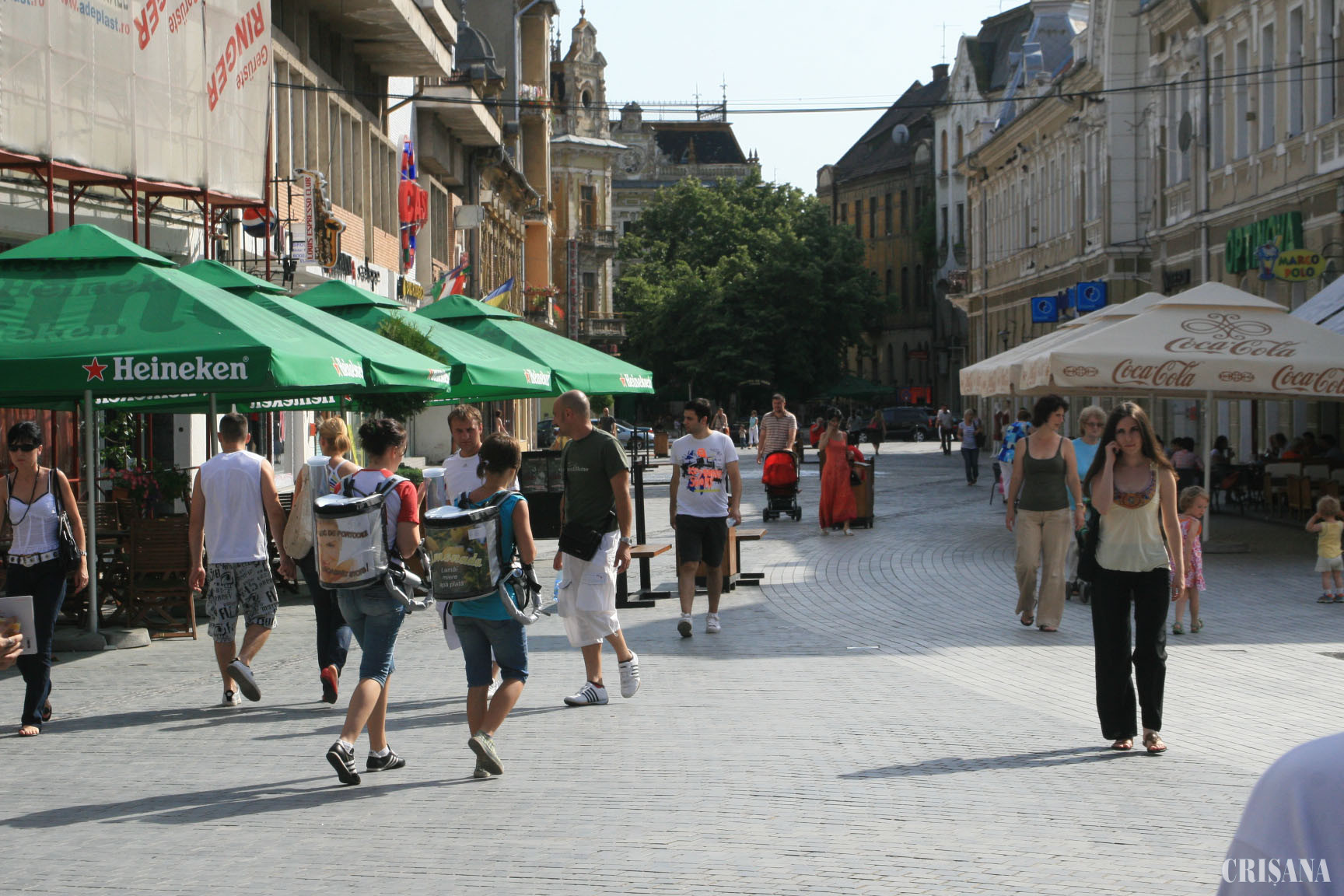 Inspectorii de urbanism din cadrul Primăriei Oradea au ieşit zilele acestea pe Corso pentru a verifica dacă societăţile de alimentaţie publică ce-şi desfăşoară activitatea în zona centrală respectă dispoziţiile privind amplasare teraselor sezoniere adoptate de Consiliul Local Oradea. În urma verificărilor efectuate au fost emise şapte somaţii în principal pentru că societăţile de alimentaţie în cauză au încălcat normele privind lăţimea terasei şi au utilizat umbrele publicitare şi nu copertine de tip rulou, neinscripţionate. Potrivit Regulamentului în vigoare, terasele sezoniere vor fi limitate la un singur rând de mese, iar pe str. Republicii terasele nu vor depăşi lăţimea de 2 metri. Din păcate, patronii localurilor de pe Corso nu s-au prea obosit să respecte aceste prevederi, mai toate terasele având două rânduri de mese, care acoperă jumătate din zona pietonală. Totodată, terasele din zona centrală îşi adăpostesc clienţii sub umbrele personalizate şi nu sub copertine neinscripţionate, conform regulamentului.