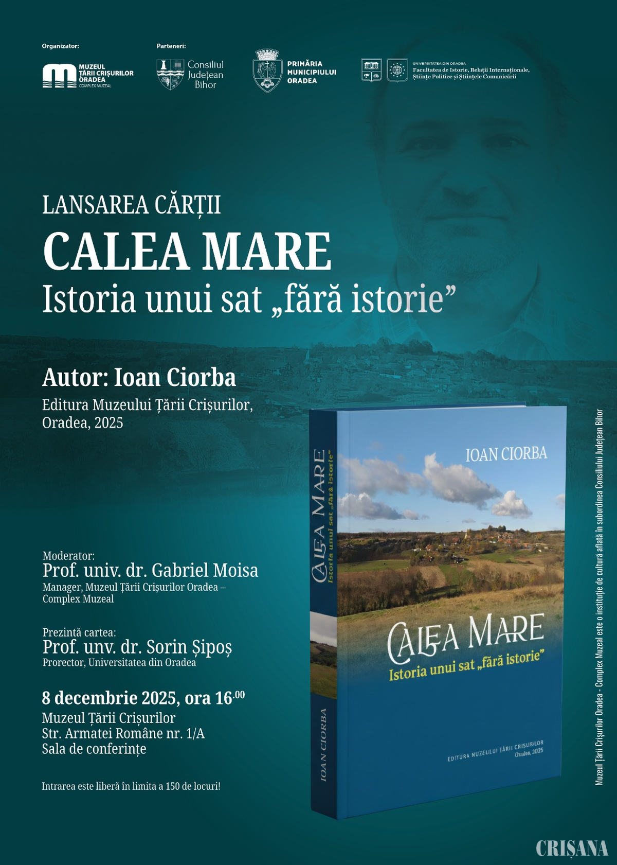 Muzeul Țării Crișurilor Oradea – Complex Muzeal, în parteneriat cu Consiliul Județean Bihor, Primăria Municipiului Oradea și Universitatea din Oradea, Facultatea de Istorie, Relații Internaționale, Științe Politice și Științele Comunicării, organizează evenimentul de lansare a cărții „Calea Mare – Istoria unui sat „fără istorie””, autor dr. Ioan Ciorba, apărută la Editura Muzeului Țării Crișurilor, Oradea, 2025.
