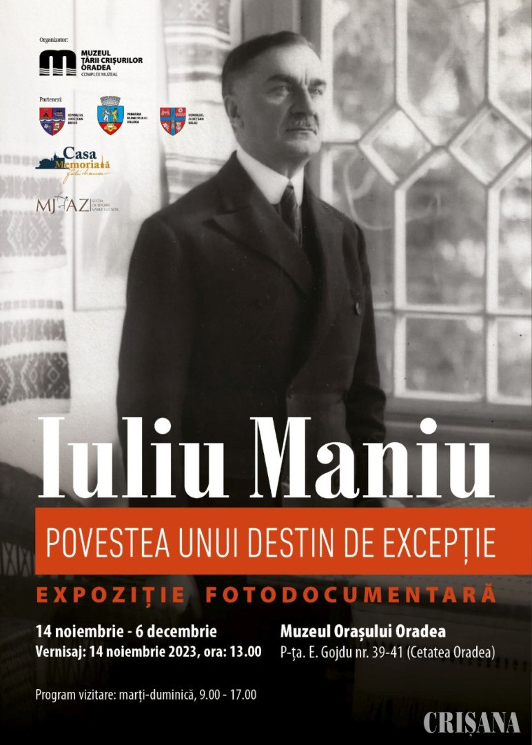 În cadrul manifestărilor prilejuite de „Anul Iuliu Maniu”, marți, 14 noiembrie, de la ora 13.00, la secția Muzeul Orașului Oradea din Cetatea Oradea, va avea loc vernisajul expoziției „Iuliu Maniu - povestea unui destin de excepție”.