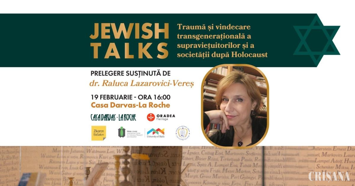 „Oradea Jewish Talks” vine pe urmele tururilor ghidate realizate de dr. Raluca Lazarovici Vereș și Flavia Matei, cu profil istorico-cultural, dedicate în special orădenilor. Prima întâlnire va avea loc joi, 19 februarie, de la ora 16.00, la Casa Darvas.