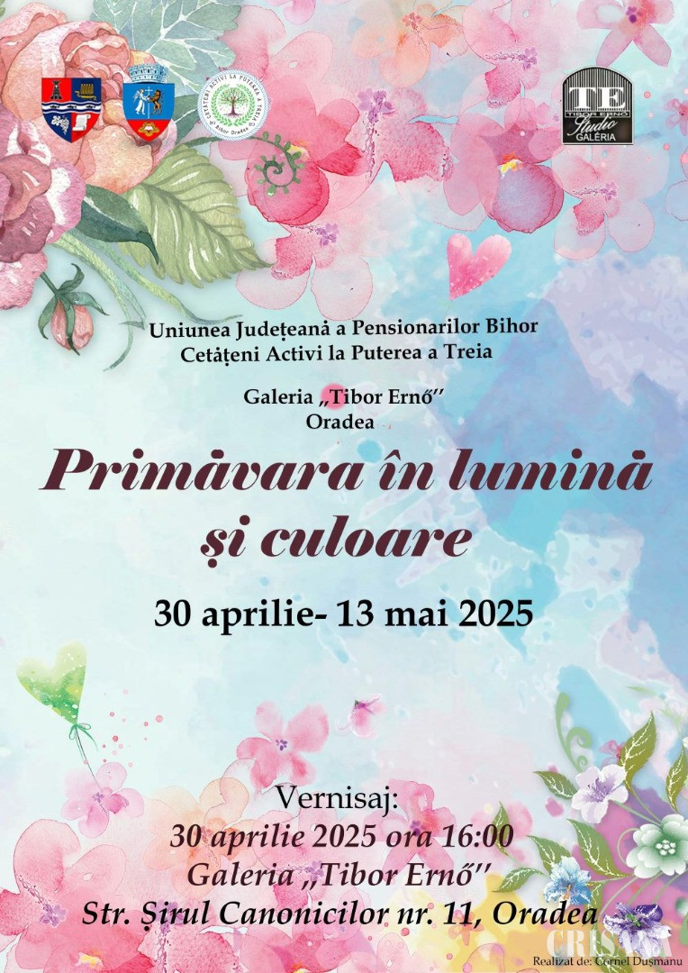 Sub genericul „Primăvara în lumină și culoare”, miercuri, 30 aprilie, de la ora 16.00, în Galeria „Tibor Erno” din Oradea, va avea loc inaugurarea unei expoziții dedicate renașterii naturii.