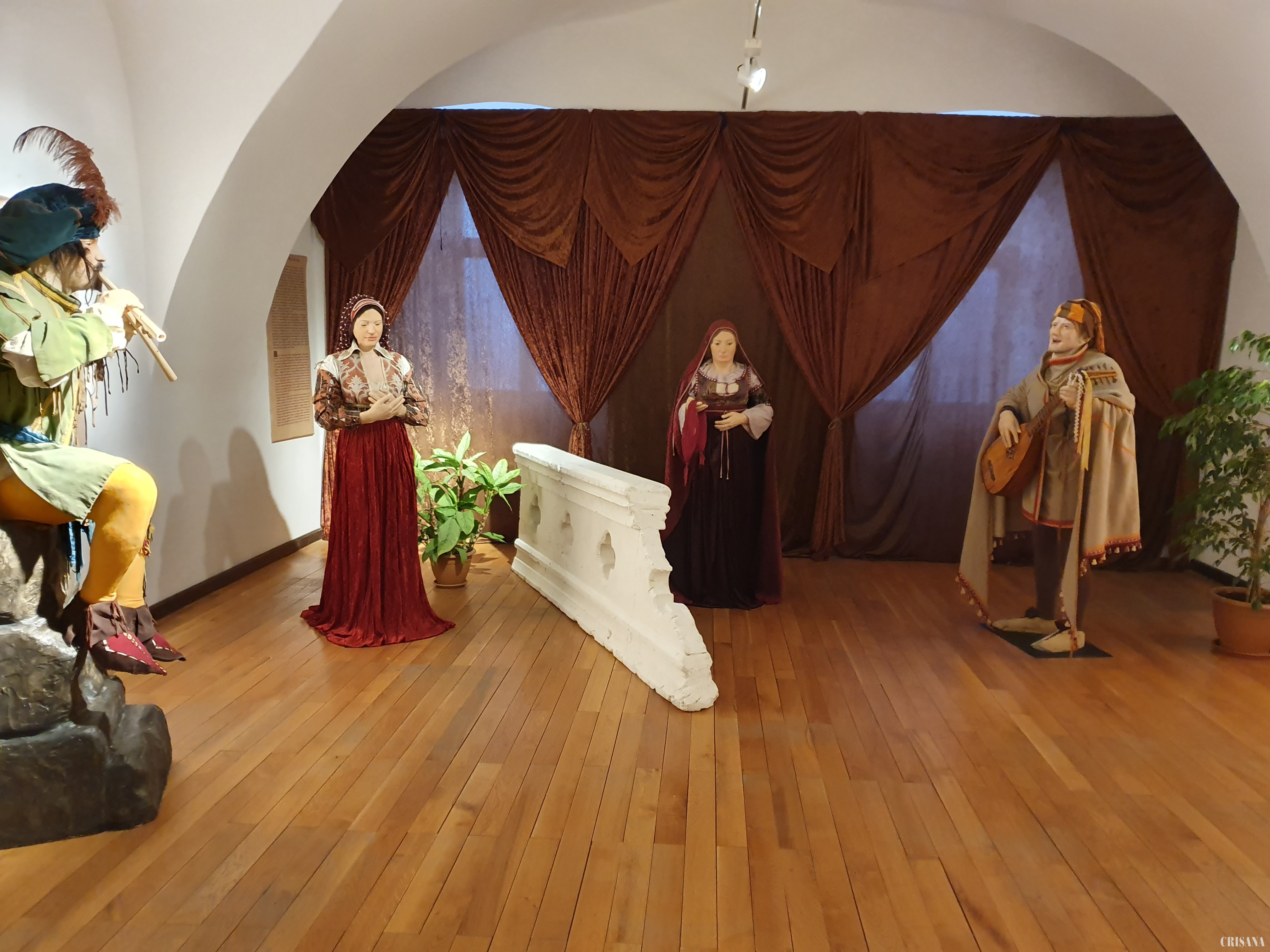 Cele 28 de figurine ce formează un ansamblu de cinci scene sunt făcute manual în totalitate. Scenele surprind date atât despre religie, științe, artă, arhitectură, sculptură, arta războiului, diplomația evului mediu cât și despre manifestarea iubirii și a muzicii. Expoziția mai conține și a șasea sală în care sunt prezente diferite jocuri interactive pentru copii în care până și adulții nu au putut rămâne deoparte și au încercat să dezlege arcadele tipurilor medievale.