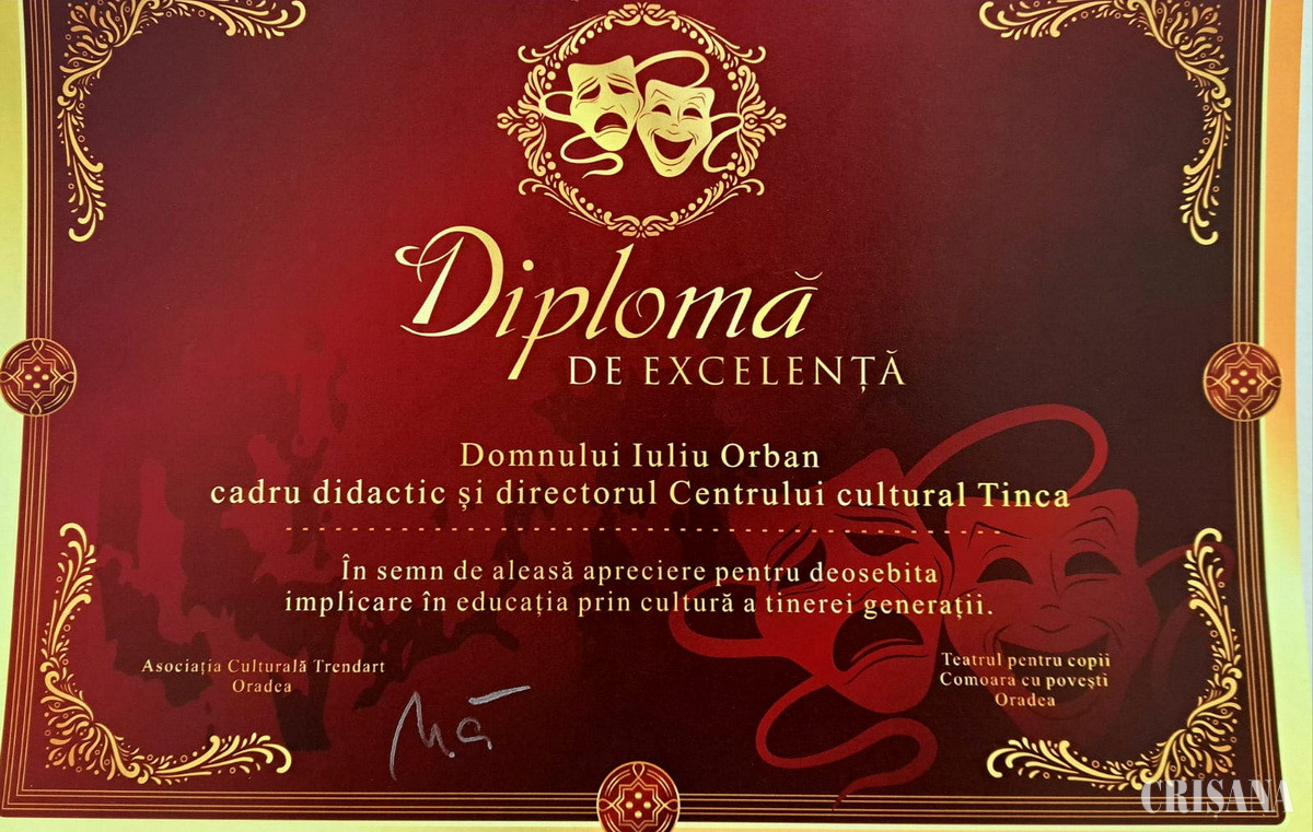 Înaintea spectacolului, managerul trupei Trendart, Marius Aron, alături de fiul său, Eric Christian Aron, manager adjunct, au oferit o diplomă de apreciere și recunoștință profesorului Iuliu Orban, directorul Centrului Cultural Tinca, pentru fructuoasa colaborare, de-a lungul celor 13 ani de teatru.
