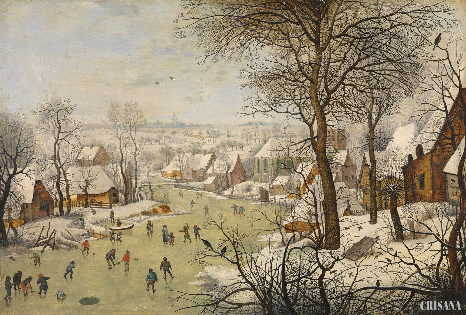 Tabloul care va fi expus în cadrul expoziţiei Capodopere ale picturii universale din colecţia Muzeului Brukenthal la Muzeul Ţării Crişurilor are titlul Peisajul de iarnă cu capcană pentru păsări, este datat 1631 şi provine din colecţia baronului Samuel von Brukenthal. Aşa cum arată şi titlul, reprezintă un peisaj rural de iarnă. Țărani de diferite vârste patinează pe un râu înghețat ce străbate satul, unii dintre ei amuzând-se cu un joc sportiv tradițional (Eisstockschießen). În prim plan, în stânga, se află o copcă, iar în planuri mai îndepărtate o latrină, o biserică și un pod. Pe mal se văd copaci în care stau multe păsări. Sub un copac, dintr-o ușă a fost improvizată o capcană de păsări, acționată de la fereastra unei case, prin intermediul unei frânghii.