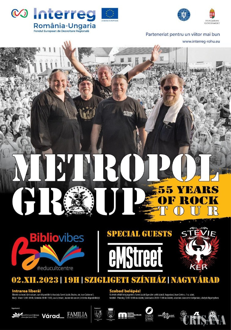 La Teatrul Szigligeti din Oradea (Piața Regele Ferdinand I nr. 6), sâmbătă, 2 decembrie, de la ora 19.00, va avea loc concertul aniversar al trupei orădene Metropol Group.