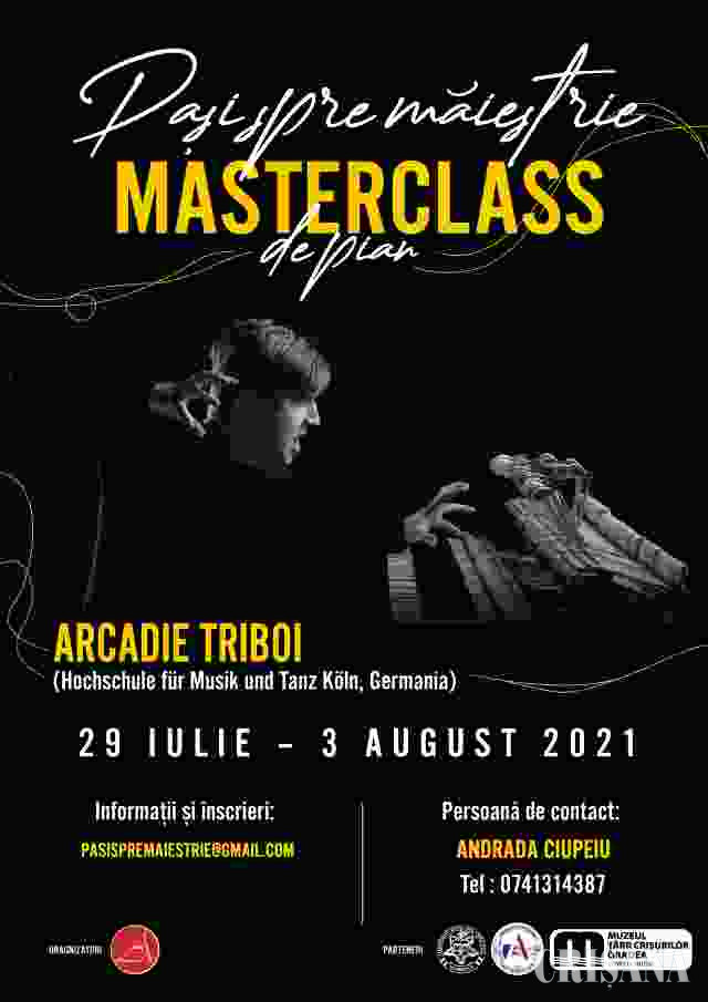 Programul masterclassu-lui începe, în data de 29 iulie, cu un eveniment public. De la ora 19.00, la Muzeul Țării Crișurilor, va avea loc concertul de deschidere a evenimentului muzical. În acest cadru, pianistul Arcadie Triboi va urca pe scenă alături de violonista Andrada Ciupeiu.