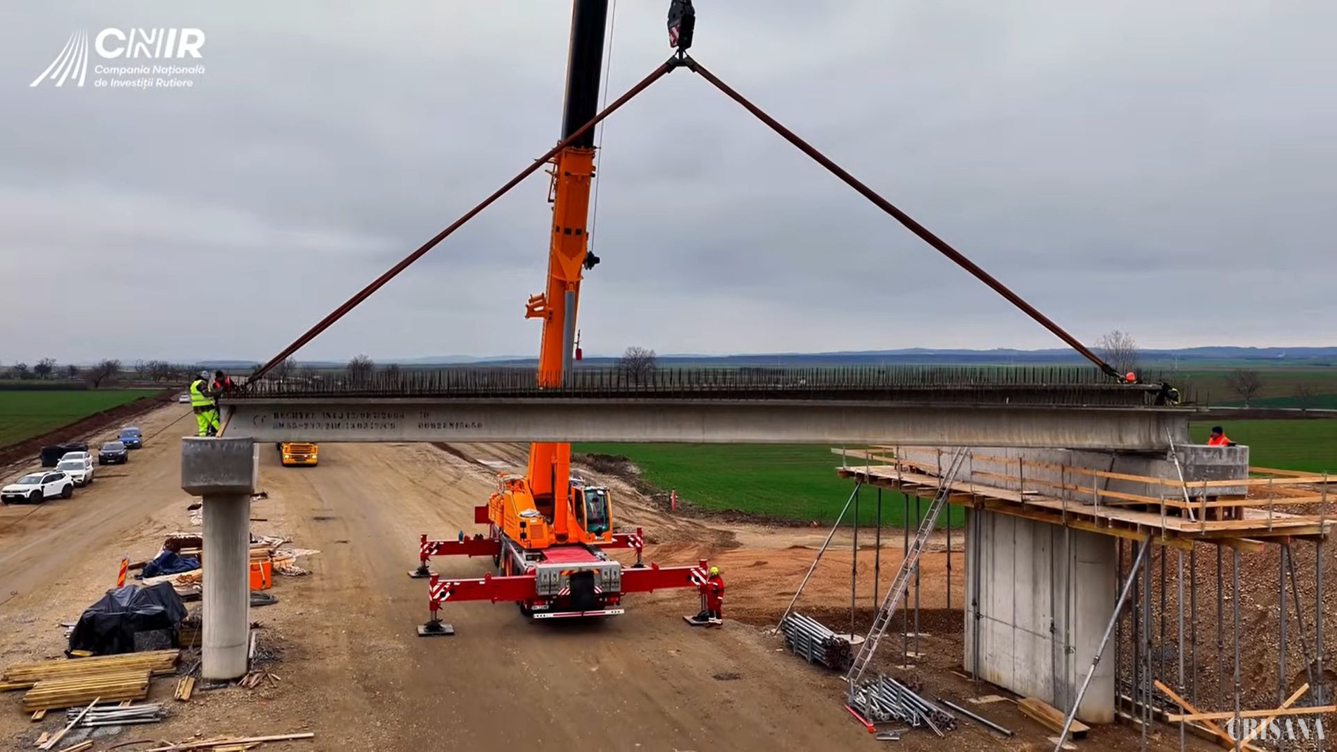 Etapă importantă pe șantierul lotului Chiribiș-Biharia: constructorul a început montarea grinzilor, pe traseul lotului cu o lungime de 28,5 kilometri din județul Bihor fiind prevăzute 18 structuri (poduri).