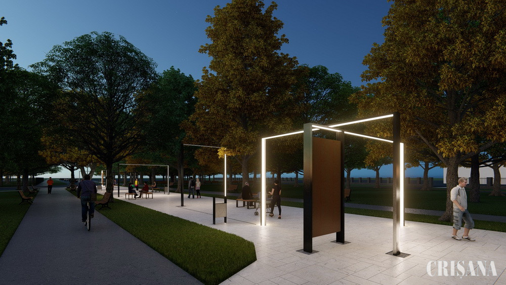 Suprafața propusă spre amenajare e de 1.070 mp, din care accesul pietonal dalat are 740 mp, iar spațiile verzi 330 mp.