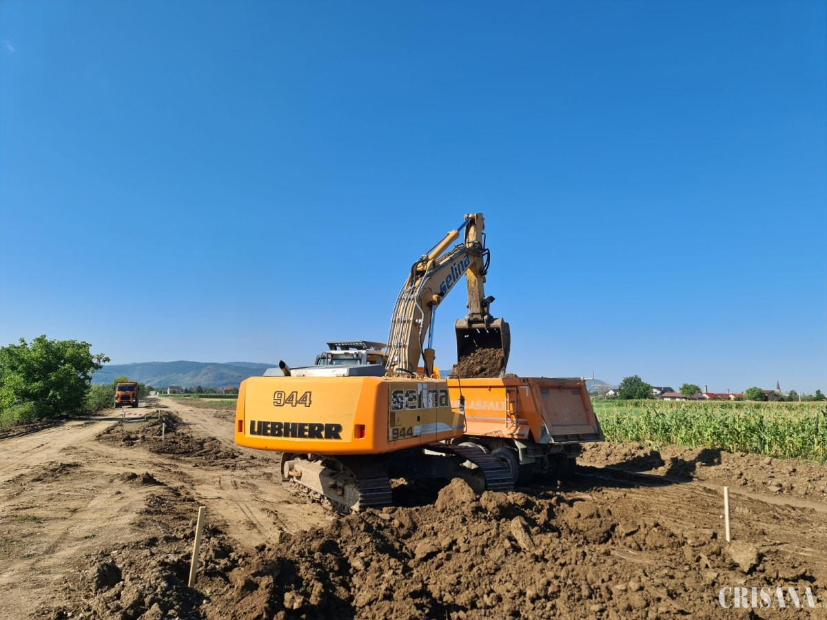 Constructorii au demarat lucrările la Varianta de ocolire a orașului Aleșd. Utilajele excavează stratul de teren vegetal și, totodată, se balastează și se compactează umpluturile.