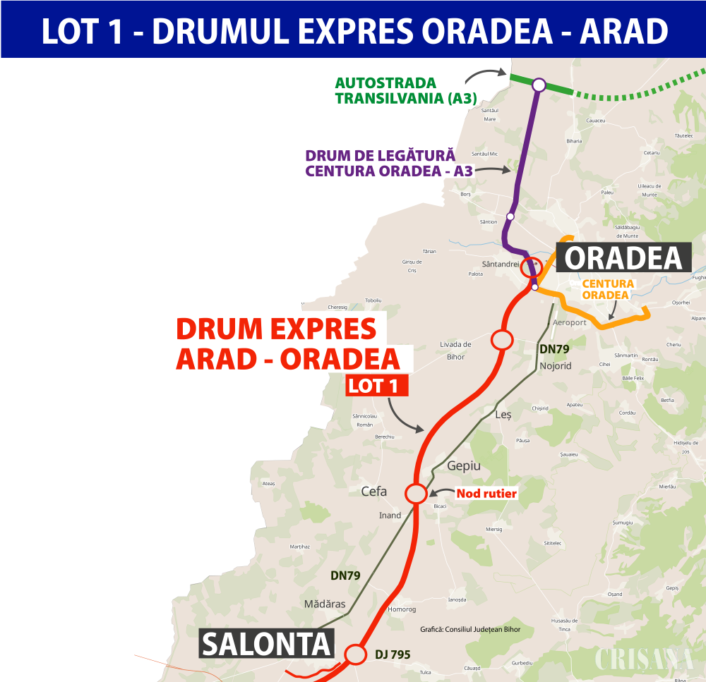 „În vestul orașului Oradea va fi construit cel mai aglomerat nod rutier din județul Bihor. Aici se vor întâlni DX Arad – Oradea, drumul de legătură dintre Centura Oradea și Autostrada Transilvania și Centura Oradea”, menţionează administraţia judeţeană.