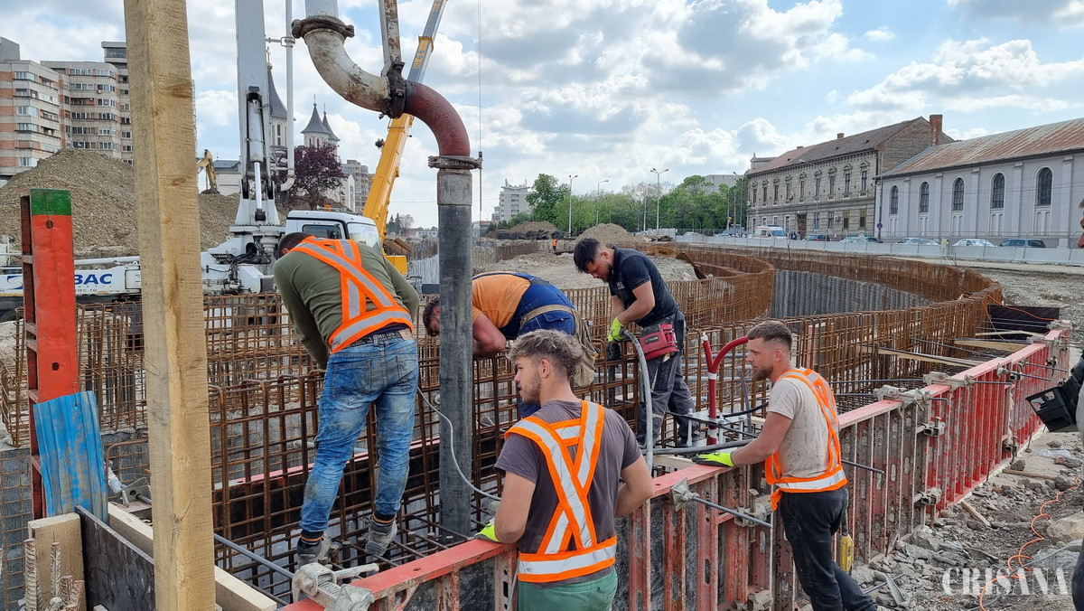 Lucrările din Piața Gojdu - A început turnarea pereților la pasajul 4