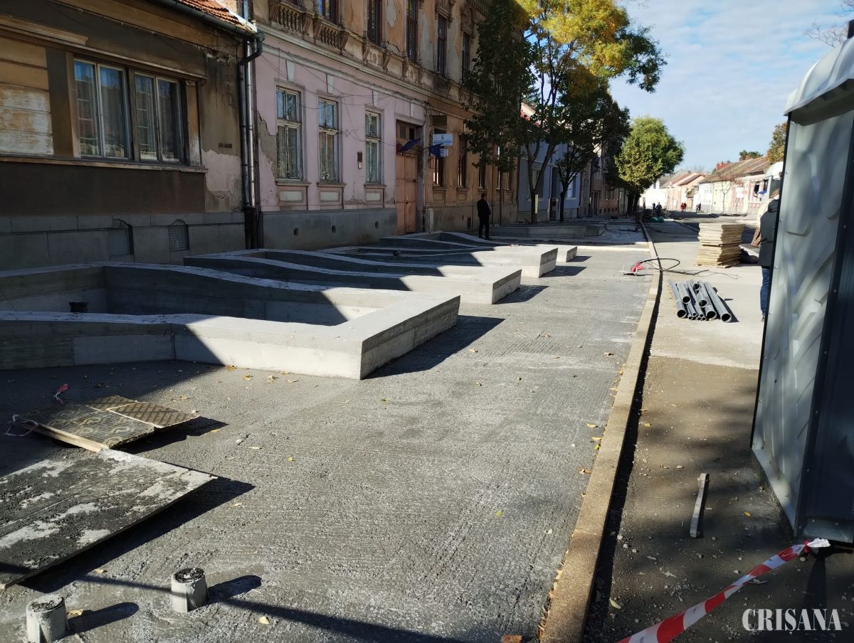 Lucrările de modernizare și pietonalizare a străzii Dunărea sunt executate de firma Construcții Bihor, în asociere cu Aquacons.