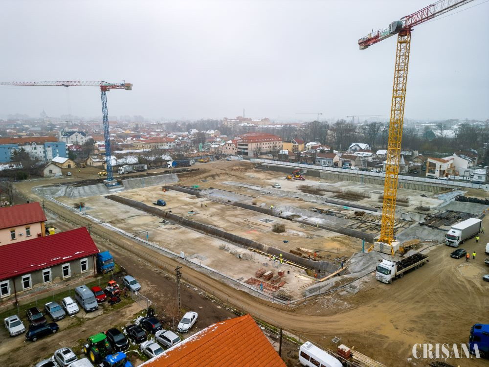 Până în prezent, lucrările de epuismente și terasamente pentru execuția corpurilor de clădire au fost finalizate în proporție de 95%, ceea ce înseamnă aproximativ 90.000 mc de terasamente executate.