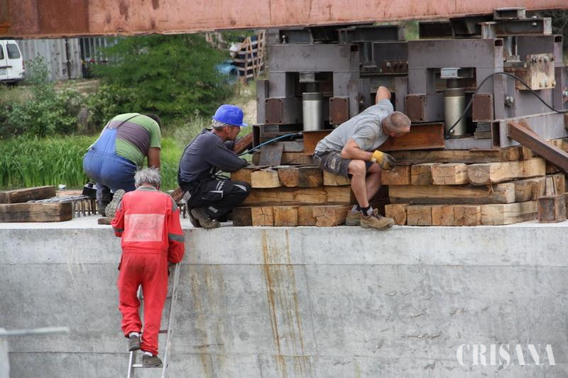 Podul de peste Crişul Repede, din zona Dragoş Vodă - Făcliei, trebuia inaugurat în urmă cu un an. Un nou termen pentru darea în funcţiune era sfârşitul lunii septembrie. Ieri, în urma unei vizite pe şantier, se putea vedea cu ochiul liber că tablierul metalic nu a fost montat în întregime, mai existând câteva tronsoane care nu au fost fixate pe malul stâng. Abia după ce tablierul ar urma să fie fixat pe poziţie, peste acesta vor fi montate plăcile prefabricate, se va turna structura de beton de 20 de cm, apoi mixtura asfaltică. Această procedură necesită ceva timp, astfel că e greu de crezut că termenul asumat de 30 septembrie va şi respectat. În paralel, pe strada Dragoş Vodă, Primăria Oradea derulează lucrările de amenajare a unui sens giratoriu, respectiv a rampei de acces spre pod. Proiectul mai prevede realizarea unui drum spre pod şi pe malul drept. Lungimea totală a rampelor este prevăzută la 163 m - cu lăţimea carosabilului de 7 m, două trotuare cu lăţimea de 2 m, reţea de canalizare pluvială în lungime de 200 metri liniari. Totodată, se va realiza iluminatul public (reţea de iluminat şi 9 stâlpi) şi pasajul pietonal la rampă mal drept, în lungime de 32 metri şi 5,5 m lăţime. Acest proiect se va executa în baza contractului nr. 261.764/10.11.2011, care se ridică la valoarea de 2.092.042, 62 lei (fără TVA), executanţi fiind S.C. Construcţii Bihor în asociere cu S.C. Drumuri Orăşeneşti.