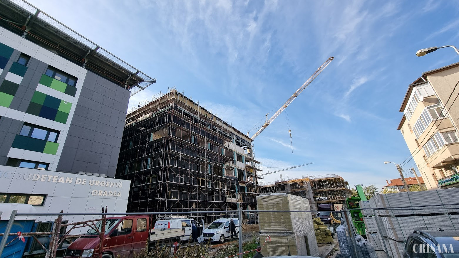 „Până acum, au fost turnați 10.500 de metri cubi de beton. În paralel, se desfășoară lucrările de finisaje interioare, instalații sanitare și electrice, ventilație și amenajarea căilor de acces. În exterior, schelele sunt deja montate pentru executarea finisajelor, iar pe terasa parcării se lucrează la structura metalică, care va susține panourile solare”, a declarat Lucian Popa, directorul Direcției Patrimoniu Imobiliar din cadrul Primăriei Oradea.