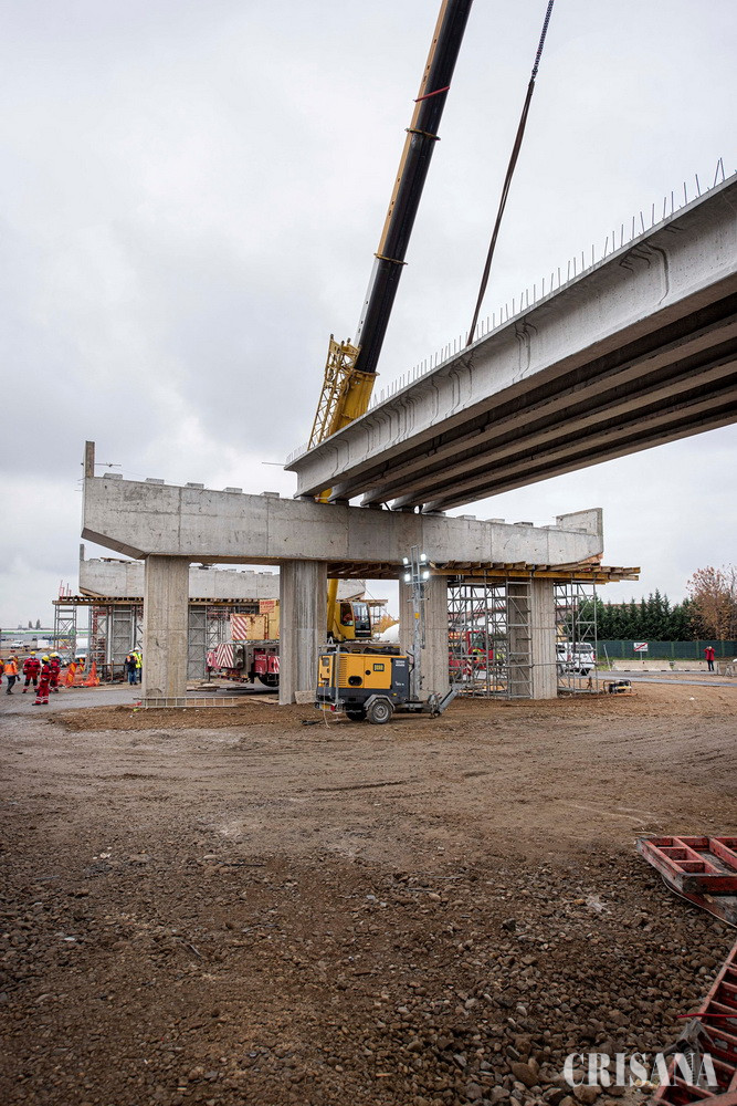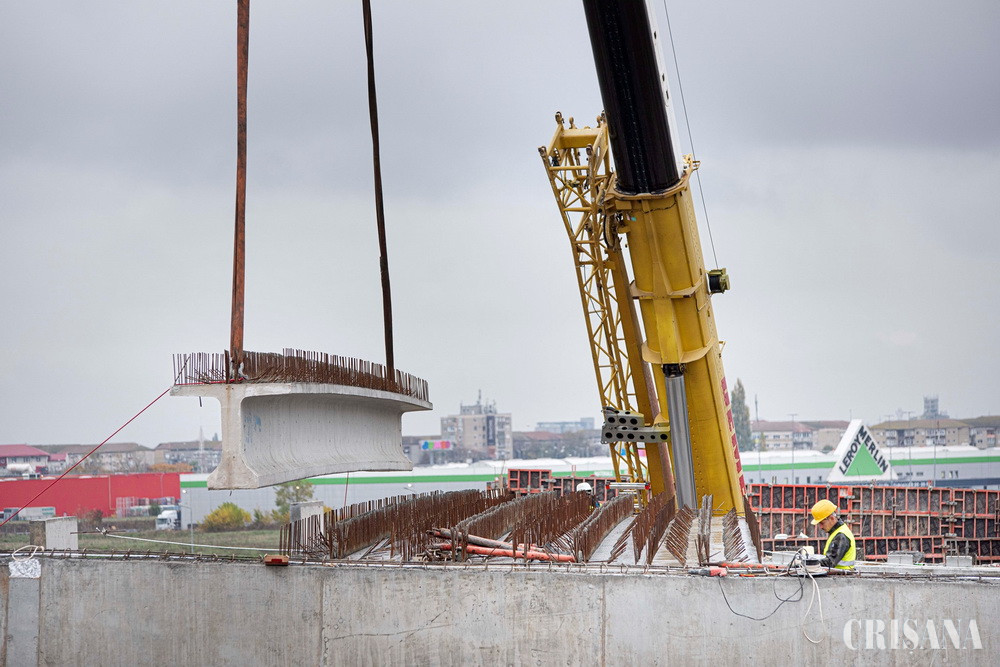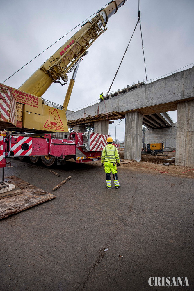 În aceste zile se montează grinzile la pasajul suprateran de pe şoseaua de centură a Oradiei, la intersecţia cu strada Universității.