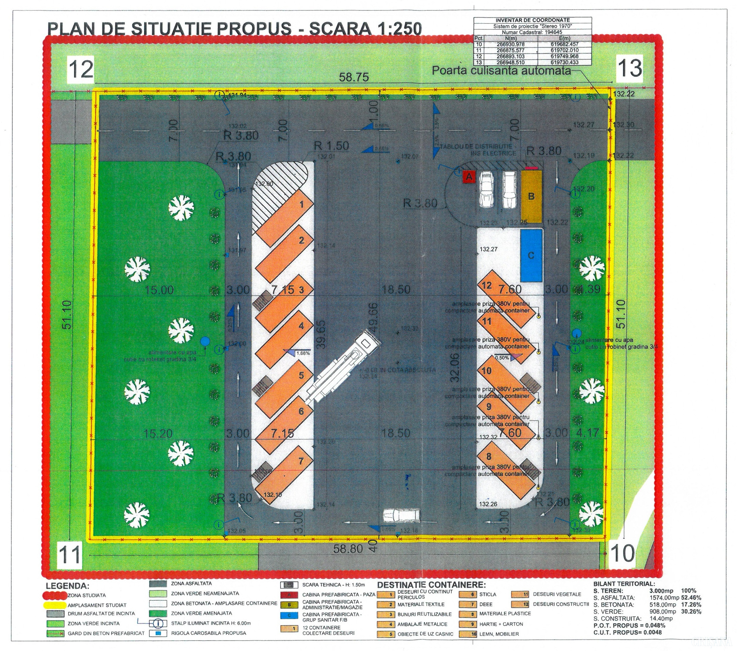 În fiecare centru vor fi amplasate câte 12 containere pentru colectare separată a următoarelor tipuri de deșeuri: materiale textile, bunuri reutilizabile, metalice, obiecte de uz casnic, sticlă, electrice/electrocasnice/electronice, materiale plastice, hârtie-carton, lemn, mobilier, vegetale, resturi din construcții și deșeuri care au un conținut periculos.