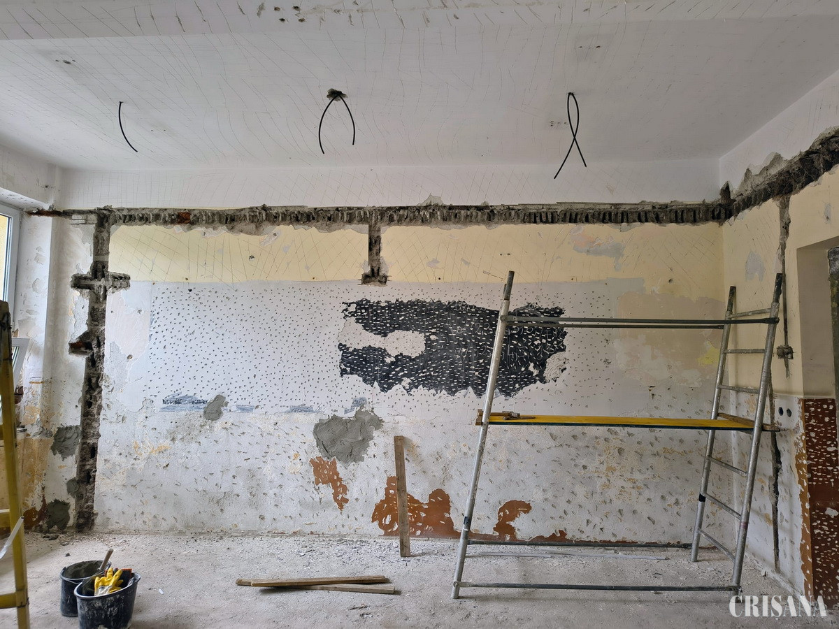 Până în prezent, în corpul principal al clădirii au fost realizate: demolări și desfaceri în proporție de 70%; instalații electrice - 70%; instalații sanitare - 25%; anveloparea termică a fațadei principale - 40%; turnarea șapei mecanizate - 30%.