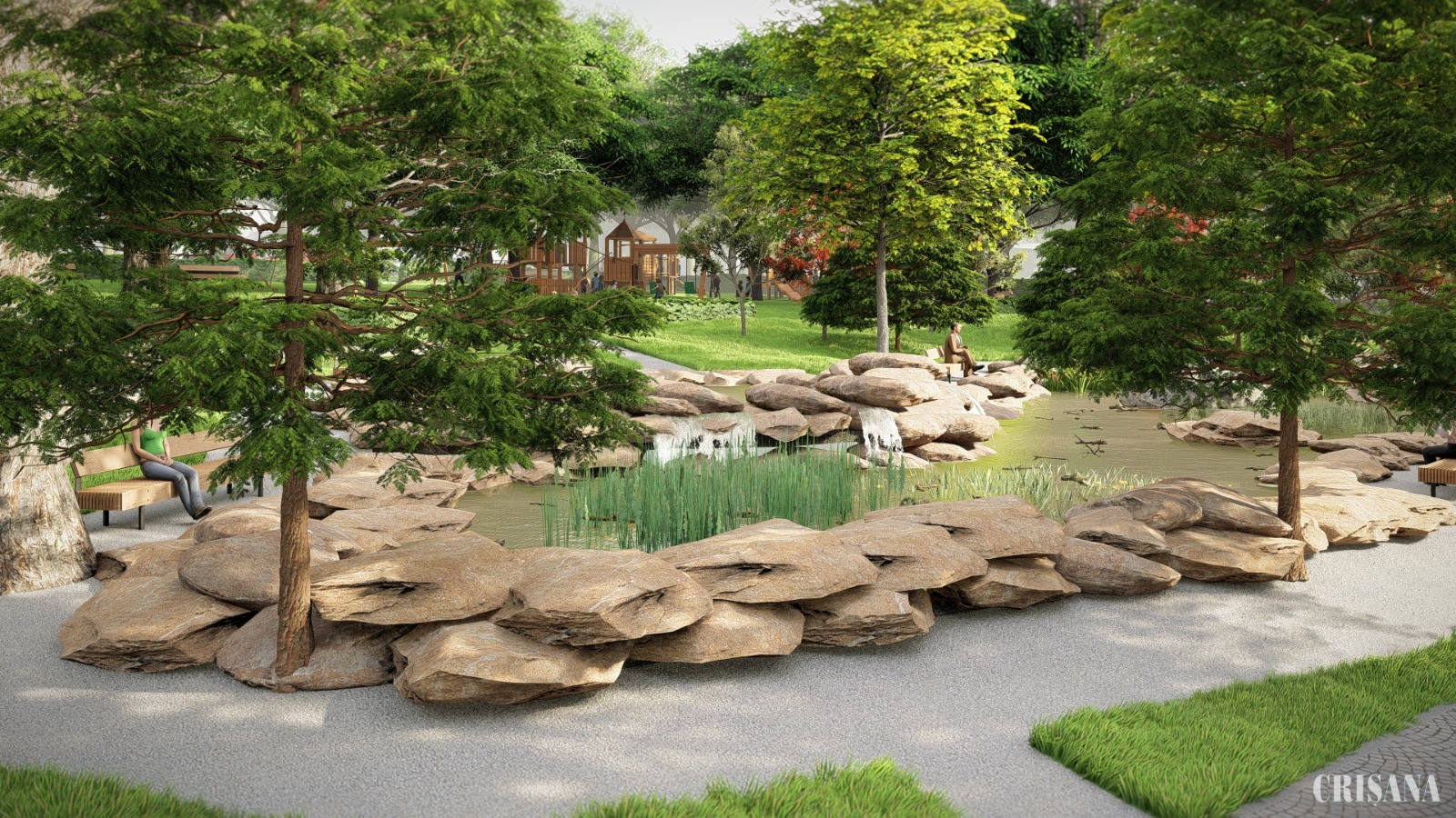 În total, suprafața verde amenajată va fi de 18.079 mp, a aleilor pietonale asfaltate de 849,11 mp, suprafața aleilor pietonale cu piatră cubică 1.794,94 mp, suprafața aleilor pietonale cu piatră spartă 95,18 mp, suprafața de tartan a locului de joacă 318,78 mp, iar suprafața bazinului japonez de 310,93 mp.