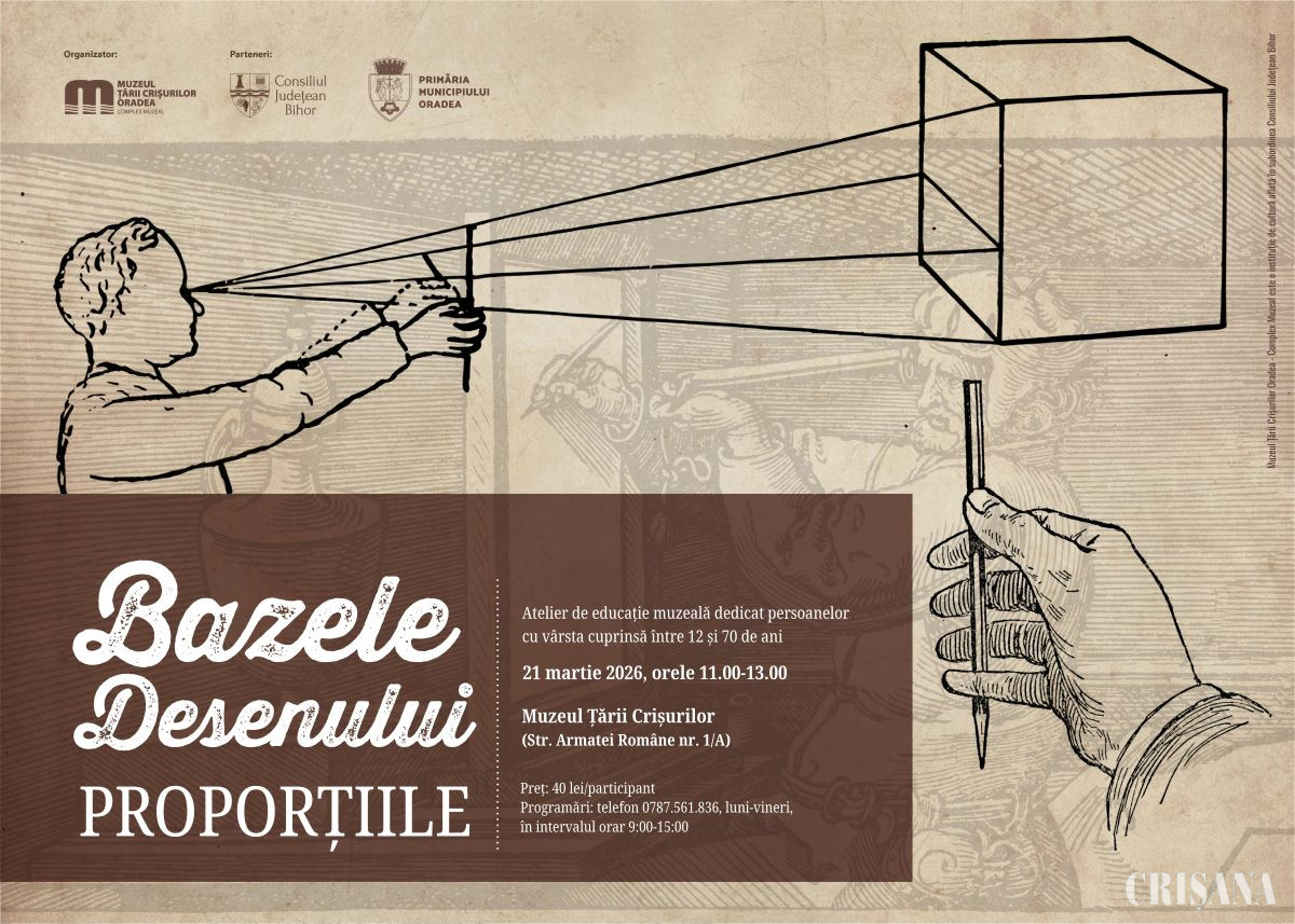 Muzeul Țării Crișurilor Oradea – Complex Muzeal, cu sprijinul Consiliului Județean Bihor și al Primăriei Municipiului Oradea, organizează atelierul de educație muzeală „Bazele desenului. Proporțiile”, dedicat persoanelor cu vârsta cuprinsă între 12 și 70 de ani.