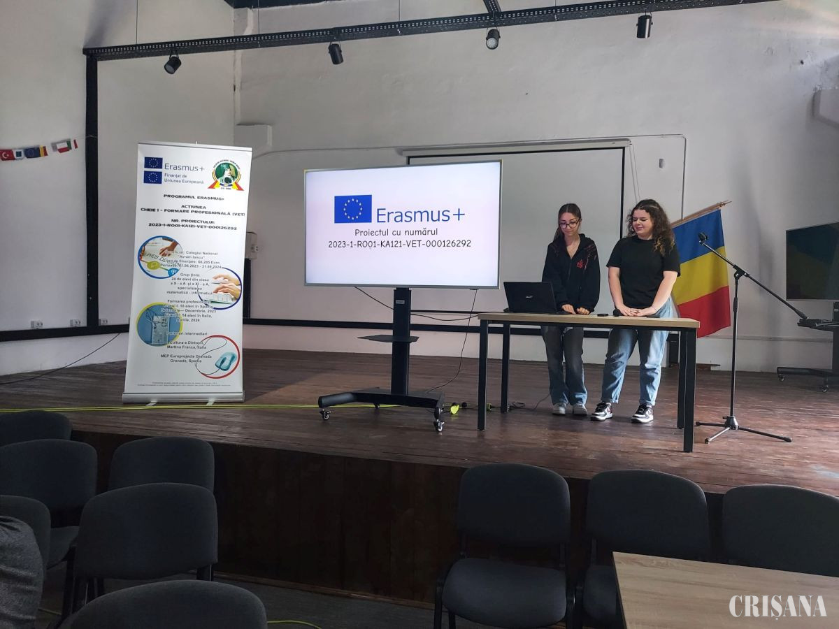 Sala de festivități a Colegiului Național „Avram Iancu” Ștei a găzduit activitatea de diseminare prin care s-a marcat încheierea celui de-al treilea an de proiect din Programul Erasmus+ Acțiunea Cheie 1 - Formare profesională VET, bugetul aprobat fiind 66.285 euro.