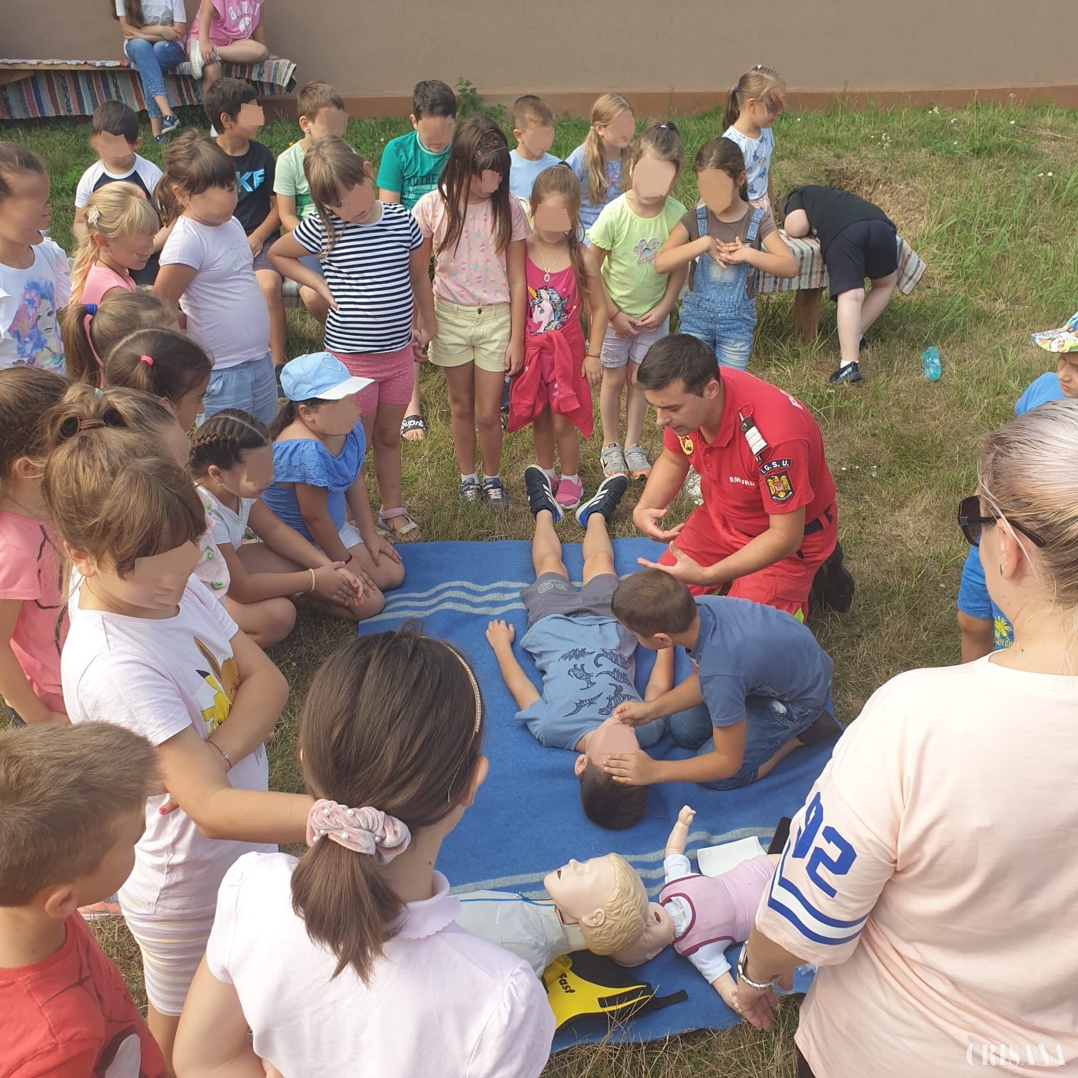60 de copii, cu vârste între 4 și 13 ani, aflați la Școala de vară „Copilăria la Biserica din satul meu”, organizată de Parohia Ortodoxă Română „Sfinții Arhangheli Mihail și Gavril” din localitatea Margine, comuna Abram, au fost învățați, de pompieri cum să se protejeze și să-i salveze pe cei din jur. Astfel, salvatorii i-au familiarizat pe cei mici și pe adolescenții prezenți, cu noţiunile de bază în acordarea primului ajutor în caz de leziuni minore, învățându-i totodată, manevra Heimlich, poziția laterală de siguranță și modul de efectuare a manevrelor de resuscitare cardio-pulmonară. Copiii au ascultat cu atenție explicațiile pompierilor, au pus întrebări și, sub coordonarea și supravegherea vigilentă a salvatorilor, și-au consolidat cunoștințele dobândite, prin intermediul exercițiilor practice efectuate cu ardoarea și vioiciunea specifice vârstei.