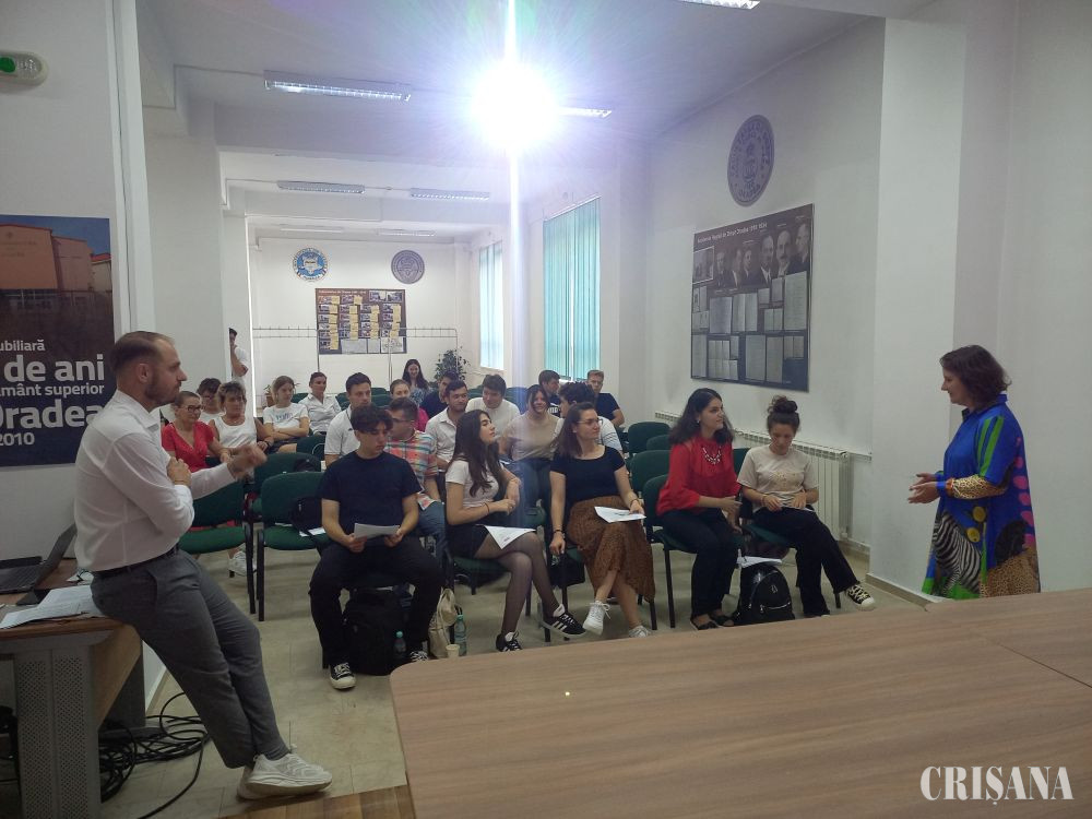 Studenți orădeni de la studii europene s-au întâlnit joi, 6 iulie, cu reprezentanții Biroului de Legătură al Parlamentului European în România. Asistând la scurte prelegeri, dezbateri și, mai ales, participând la jocuri interactive, tinerii au învățat cum să fie cetățeni activi ai Uniunii Europene.