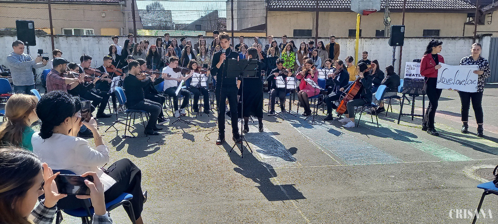 „Am dorit să creăm un eveniment prin care să ne amintim de Beatles. Nu este doar muzica unei formații, ci muzica de suflet a unor generații întregi, cu mesaje în care ne regăsim cu toții și astăzi. Filmul Yesterday m-a inspirat și m-am gândit că ar fi bine ca elevii din generația tânără să descopere această muzică. I-am lăsat pe copii să-și aleagă repertoriul, iar repetițiile au început anul trecut în noiembrie. Cred că, după perioada de pandemie în care elevii au fost izolați, sunt foarte bine venite evenimentele în care ne adunăm împreună, ne bucurăm de viață, iar această muzică, eternă, este cea mai potrivită”, a declarat, pentru Crișana, Cosmina Balint, profesoară de Limba engleză la Liceul de Arte.