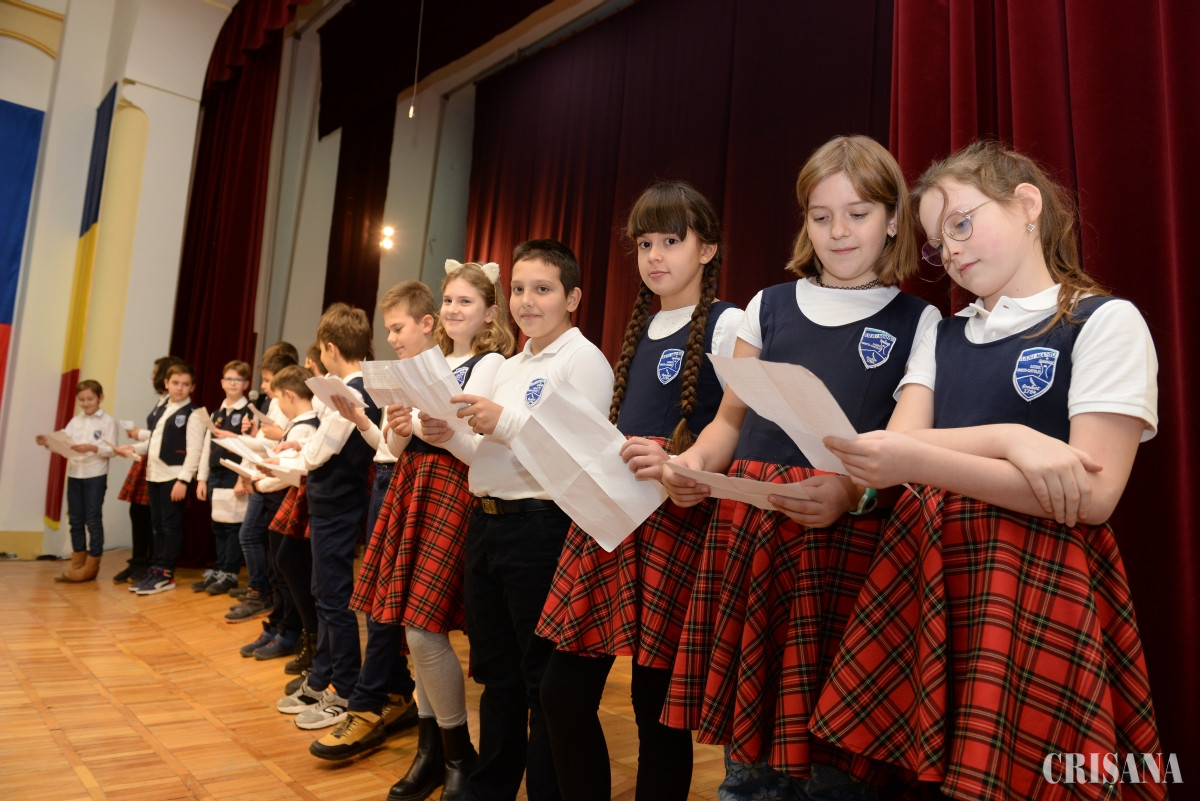 Sute de elevi din clasele primare ale Liceului Greco–Catolic „Iuliu Maniu” din Oradea au sărbătorit, luni, prin cântec şi joc, Ziua Naţională a României, marcând astfel sfârşitul unui proiect finanţat de Fundaţia Comunitară Oradea.