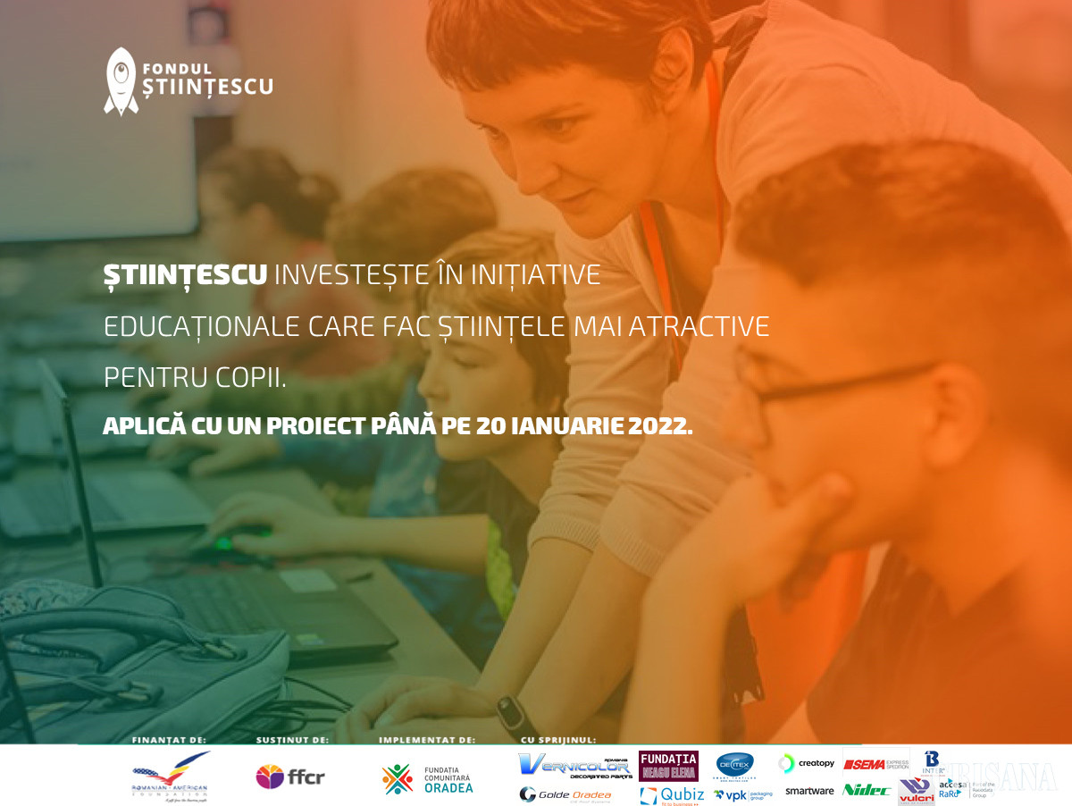 Prin Fondul Științescu, Fundația Comunitară Oradea (FCO) dorește să stimuleze interesul şi să dezvolte abilitățile și potențialul tehnic al elevilor din județul Bihor prin finanțarea de proiecte educaționale ce propun o abordare multidisciplinară și aplicată a științelor. Prin acest fond, FCO oferă oportunitatea educatorilor bihoreni pasionați de științe să dezvolte și să deruleze proiecte educaționale creative și inovatoare, bazate pe aplicații practice, cu scopul de a insufla pasiunea lor copiilor şi tinerilor între 6 şi 19 ani.