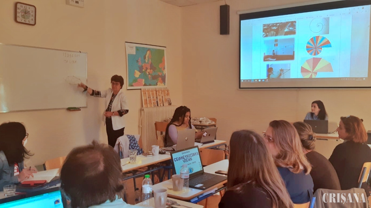 După cum declara profesoara Corina Sabău, „pe lângă activitatea cu elevii, care îmbină cultura matematică cu latura artistică, proiectul Geometrician’s Views presupune și întâlniri de instruire ale personalului, evenimente de diseminare sau reuniuni transnaționale. Prima întâlnire de acest gen s-a desfășurat în Franța, la Toulouse, în septembrie anul trecut, iar cea de-a doua a avut loc recent, în perioada 4-8 mai, la Karditsa, în Grecia. Programul acestei mobilități a cuprins prezentări ale activităților realizate în cadrul proiectului, conferințe ale profesorilor din Franța, Italia și Grecia, evenimente de diseminare și workshopuri. În cadrul evenimentului de diseminare, standul României, având ca temă Frizele, a impresionat atât prin creativitatea elevilor care au realizat obiecte decorative ce îmbină geometria cu arta, cât și prin expunerea unor produse de artă populară românească, cu trimitere la elemente geometrice”.