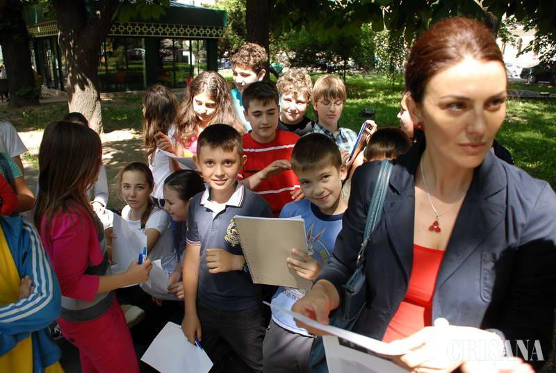Aleile parcului Libertăţii (la câţiva metri de Podul Intelectualilor) s-au umplut ieri de veselie şi voie bună pentru aproximativ o oră. Elevii unei clase de-a V-a de la Şcoala „Oltea Doamna", însoţiţi de prof. Liliana Bocoi, au ieşit pe malul Crişului pentru a-şi face fişele de observaţii la lecţia „biosfera" de la disciplina geografie. Micuţii au privit cu atenţie malurile apei şi şi-au notat conştiincios în caiete ceea ce au văzut. „Copiii îşi fac fişe de observaţii pentru portofoliul personal privind biosfera. I-am adus pe malul Crişului pentru ca să vadă diferenţele dintre un mal de apă amenajat şi unul sălbatic", a explicat, pentru Crişana, profesoara de geografie Liliana Bocoi. Evenimentul a fost o bucurie nu doar pentru copii, ci şi pentru trecătorii care s-au oprit, privindu-i îndelung şi mirându-se de seriozitatea micuţilor.