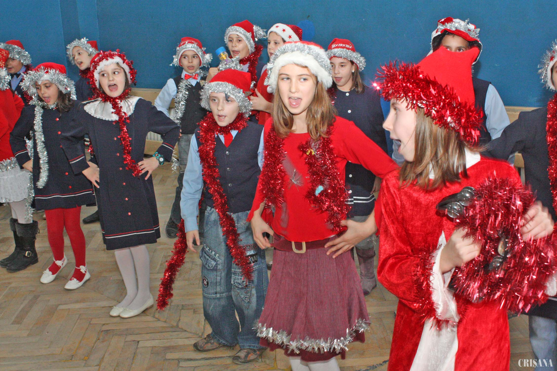 În aşteptarea Moşului cel bun, elevii Colegiului Naţional "Iosif Vulcan", din Oradea, au pregătit ieri câteva colinde şi cântece tradiţionale în limbile română, maghiară, germană, franceză şi engleză, pe care le-au dedicat tuturor profesorilor şi participanţilor la spectacol.