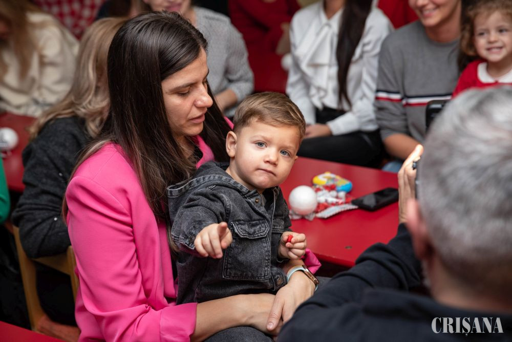 Bucuria, însă, cea mai mare a fost momentul în care Moșul, cu tolba sa plină de daruri, și-a făcut apariția în sală. Chipurile copiilor radiau bucurie și, totodată, nerăbdare în așteptarea cadoului mult dorit. Chicotele lor zglobii și asigurarea că ei au fost foaaaarte cuminți și ascultători l-au înduplecat pe Moș să le ofere darurile promise. Și-au așteptat cuminței rândul după cadoul Moșului, acesta strigându-i pe nume și chemându-i la el, preț de câteva clipe și o fotografie amintire. Atmosfera de basm a fost culminată de privilegiul micuților și a părinților de a se poza alături de Moș.