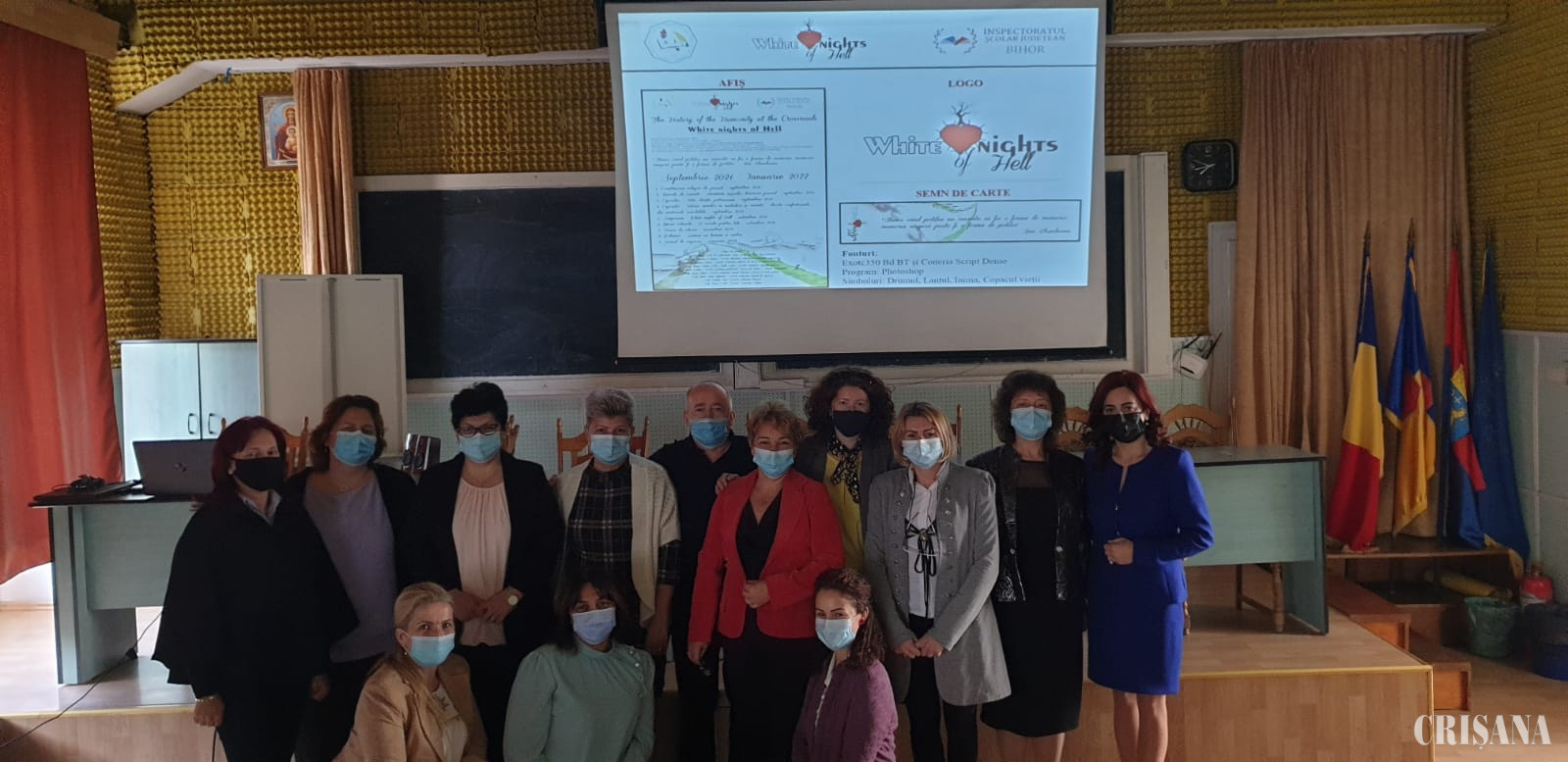 Intitulat „The history of the humanity at the crossroads” proiectul are ca temă „White nights of Hell” și își propune să îi ajute pe elevi să înțeleagă modul brutal în care a fost schimbată istoria Europei în secolul al XX-lea ca urmare a Holocaustului, genocidului și totalitarismului. Beneficiari direcți ai proiectului sunt elevii cu talent în domeniul artistic, literar, economic, istoric, care doresc să dezvolte tematica. Mai exact, din Bihor, 150 de elevi, 15 cadre didactice, și 5 membri ai comunității locale. Beneficiari indirecți sunt elevii și profesorii liceului, comunitatea locală, alte şcoli din judeţ şi din ţară și instituţiile de cultură partenere. Echipa de proiect este formată din 9 coordonatori: doi principali – Livia Ghiurcuța și Olga-Valentina Trif și 7 pe secțiuni – Cristina Brădău, Flavia-Iulia Oprean, Emilia Negru și Erika Ballo, Violeta Fetea, Elena Luca, Mihaela Mate-Sidea, Zita Bondar și Vasile Juncu.