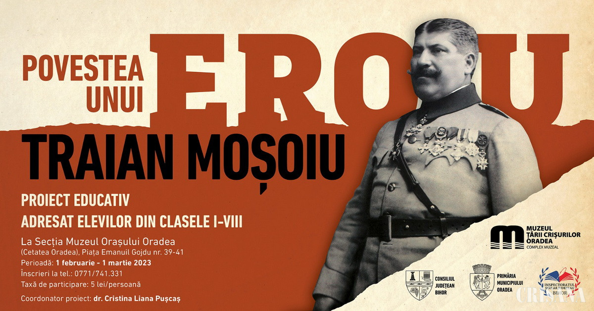 În perioada 1 februarie - 1 martie 2023, la Secția Muzeul Orașului Oradea, din cadrul Muzeului Țării Crișurilor Oradea - Complex Muzeal, se va desfășura programul muzeal - educativ „Povestea unui Erou - Traian Moșoiu”.