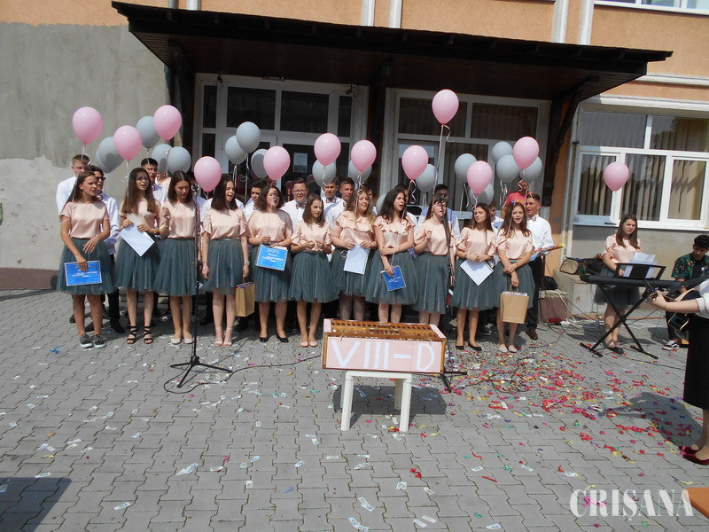 Nostalgia după anii de şcoală, rememorarea unor „năzbâtii”petrecute, dragostea pentru dascăli sunt ingredientele acestor ceremonii, fără scenariști sau regizori. De obicei, aceste importante momente în viața tinerilor trec, evidențiindu-se mai mult latura festivistă, fără a se pune accent pe transformările de ordin fizic și psihic, ce-l caracterizează pe adolescent. Urmărind un asemenea eveniment, un adult, fără să vrea, rememorează propria sa postură de adolescent, petrecută în alte condiții, determinate de etapa politică și socială în care a trăit. Fără să analizăm anul 2018, cu evoluțiile și involuțiile sale, ne focusăm doar pe generația de absolvenți ai claselor a VIII-a de la Liceul Teoretic „Constantin Șerban” din Aleșd, a cărei zi festivă s-a derulat joi, 7 iunie. Cadrul superb în care s-a petrecut evenimentul, într-o zi de asemenea superbă, a fost amprentată de o explozie floristică, frumos asortată în buchete, având destinații precise: diriginți, profesori sau elevi merituoși. În mijlocul acestei „piețe” de flori, armonizate cu sute de „flori vii”, absolvenții, în prezența familiilor, din care n-au lipsit bunicii, a început ceremonia prin discursul prof. Liliana Antonescu, directorul liceului. După un scurt bilanț al rezultatelor obținute de cei 114 absolvenți, a dat cuvântul diriginților de la cele cinci clase, care au împărțit diplome și mențiuni. La citirea premianților, ropote de aplauze i-au însoțit pe posesorii prețioaselor atestate, care au evaluat munca lor și bagajul de cunoștințe acumulate în cei patru ani de gimnaziu. După numărul de premianți ne-am putut da seama de nivelul ridicat de cunoștințe acumulate de elevi. Ne-am oprit la clasa a VIII-a D, profil intensiv engleză, dirigintă prof. Marinela Copăceanu, care se situează pe primul loc ca performanță în liceu, după rezultatele obţinute de elevi. Doamna dirigintă şi-a început discursul cu deviza zilei: exuberanță, tinerețe, frumusețe. Trecerea unei generații de elevi prin școală nu se face de la sine, prin trecerea implacabilă a timpului, ea este rodul unei munci de echipă. Rezultatele sunt eforturile conjugate ale elevilor, cadrelor didactice și părinților, care au acționat în funcție de poziția lor, pentru un țel comun în devenirea viitoare a tinerilor. Referindu-se la cei 30 de absolvenți pe care i-a îndrumat patru ani, a realizat o caracterizare generală, apreciind nivelul foarte ridicat de cunoștințe acumulate, fapt pentru care toți cei 30 de elevi au fost premiați cu diplome și mențiuni. Dintre aceștia se desprind cei trei șefi de promoție, care pe parcursul celor patru ani gimnaziali au obținut media generală 10 - Mălina Cureu, Bianca Ioniță și Bianca Madar, care au primit și diplomă de onoare. Lor li se adaugă Şerban Vancea și Matei Selei, care, pe lângă media 10 cu care termină clasa a VIII-a, au avut rezultate meritorii și la olimpiade: limba română, limba engleză, biologie și religie. Un sfat adresat elevilor, cu semnificație deosebită, a încheiat discursul doamnei diriginte: „ Să vă trăiți viața frumos. Să vă iubiți părinții. Să respectați dascălii.” O altă dirigintă, prof. Diana Silaghi, a transmis elevilor săi un alt sfat cu profunde semnificații: „Toți oamenii pot dobândi succesul dacă sunt pasionați și dedicați cauzei lor”. A urmat momentul artistic, în care fiecare clasă și-a cântat propria amintire despre ani petrecuți în școală. Trebuie evidențiată ținuta elegantă a fiecărei clase, precum și evoluția artistică. Clasa a VIII-a D a ieșit din nou în evidență, când evoluția lor a fost însoțită de zborul a 30 de porumbei, eliberați dintr-o cușcă. Drum bun și succese într-o altă etapă de viață, maturitatea.