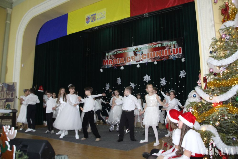 Evenimentul, ajuns acum la ediția a IX-a, a fost organizat în sala mare de festivități a Casei de Cultură „Miron Pompiliu” Ștei, arhiplină, fapt ce denotă dorința elevilor și a cadrelor didactice de la Școala Gimnazială „Miron Pompiliu” Ștei - a cărei conducere este compusă din profesorii Emanuel Coroiu și Romulus Fășie, director, respectiv director adjunct - de a trăi împreună tradițiile românești din perioada ce precede praznicul Nașterii Domnului. Și acum, ca în fiecare an, autoritățile locale au fost alături de elevii și publicul spectator șteian, reușind ca, prin intermediul lui Moș Crăciun, să le ofere tuturor participanților pungi pline de bunătăți. Autoritățile locale au fost reprezentate de ec. Marius Cioară, viceprimarul orașului Ștei, iar Consiliul Județean Bihor a fost reprezentat de consilierul județean Dorin Traian Boca, ambii, în alocuținile susținute, felicitând atât elevii, cât și cadrele didactice pentru prestația avută. Într-o organizare impecabilă, spectacolul cultural-artistic „Magia Crăciunului” - a cărui echipă de proiect este formată din profesorii Emanuel Coroiu, director, Romulus Fășie, director adjunct, Felicia Țoța, coordonator proiecte și programe educative, Angelica Miara, responsabil proiecte și programe comunitare, Ileana Tomescu, prof. bibliotecar - a reușit să capaciteze atenția unui public deosebit de cald, care pe durata a aproape patru ore a răsplătit cu ropote de aplauze un program din care nu au lipisit colindele tradiționale, poeziile, scenetele, cântecele populare, dansurile moderne, dar mai ales cântecele specifice Sărbătorilor de Iarnă. Pe toată durata acestui adevărat spectacol, echipa de proiect a fost sprijinită de profesorii Ioana Fărcanea, Alina Todor, Maria Petruse, Florina Creț, Cristian Bunta, Voichița Bogoșel, Lavinia Stan, Natalia Bunduruș, Sanda Merce, Georgeta Mușet, Anca Golița, Angela Vlaș, Damaris Cosma-Brândaș, Ramona Bursașiu, Adriana Fericean, Anamaria Dume, Florina Lupău, Liana Becheanu-Moza, în timp ce moderatori au fost Bianca Terebenț, Rareș Mușet, Anamaria Gruie și Ianis Parasca. Programul a cuprins două părți, în prima fiind pe scenă elevii din clasele pregătitoare, A, B, C, din clasele a I-a, A, B, C, și a II-a, A, B, C. În partea a doua momentele au fost pregătite, și prezentate, de elevii din clasele a III-a, A, B, C, și a IV-a, A, B. Dar, primii colindători, ai unei zile deosebite la poalele Munților Apuseni, au fost cadrele didactice cu o „apariție” bine pusă la punct, în timp ce momentul susținut a fost de o ținută aparte, ca și costumele tradiționale purtate. Conducerea Școlii Gimnaziale „Miron Pompiliu” Ștei, împreună cu întregul corp profesoral al școlii, a adresat mulțumiri părinților și Asociației de Părinți, pentru substanțialul sprijin acordat. Timpul a trecut foarte repede în compania personajului principal, așteptat cu atâta nerăbdare de cei prezenți, Moș Crăciun, care, prezent fiind chiar de la debutul evenimentului, a fost foarte bucuros că a asistat la un spectacol reușit, apreciind talentul micilor artiști de pe scenă, pe care i-a felicitat, oferindu-le, bineînțeles, cadourile mult dorite.