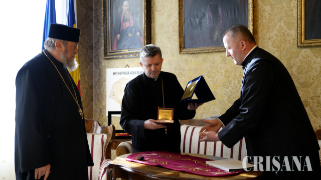 În cadrul întâlnirii, Înaltpreasfințitul Părinte Laurențiu a primit, din partea decanului, pr. conf. univ. dr. Viorel-Cristian Popa, Medalia și Diploma aniversară prilejuite de împlinirea a 100 ani de la înființarea învățământului teologic ortodox academic la Oradea.
