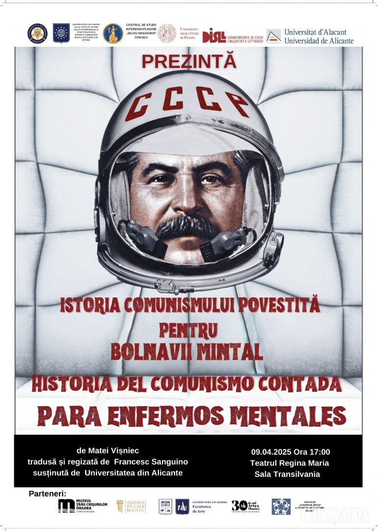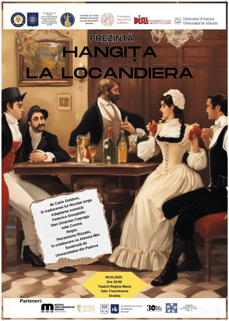 Sala „Transilvania” a Teatrului „Regina Maria” din Oradea va găzdui, pe 9 aprilie, de la ora 17.00, reprezentația piesei de teatru ,,Istoria comunismului povestită pentru bolnavii mintal”, de Matei Vișniec, regia Francesc Sanguino, Universitatea din Alicante. Spectacolul se joacă în catalană, fiind subtitrat în limba română. În aceeași zi și în aceeași sală, dar de la ora 19.00, va fi pusă în scenă „Hangiția” lui Carlo Goldoni, în traducerea lui Nicolae Iorga, adaptarea scenică Federico Donatiello, Dan Octavian Cepraga și Iulia Cosma, regia Pierantonio Rizzato, în colaborare cu Alessia Mio de la Universitatea din Padova. O notă de inedit a acestei reprezentații ține de faptul că ea va fi susținută de studenții Universității din Padova în limba română.