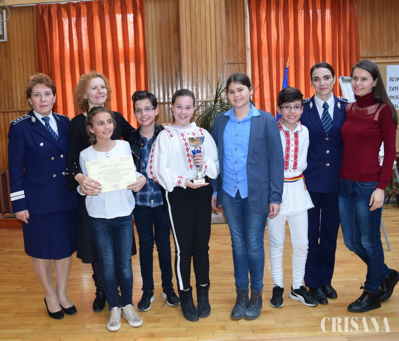 În cadrul concursului „Mesajul meu antiviolență”, elevii au avut posibilitatea să abordeze într-un mod original recomandările poliţiştilor, prin combinarea educaţiei cu arta teatrală, pentru a transmite un mesaj de impact vis-a-vis de prevenirea manifestărilor violente. Peste 200 de elevi și profesori organizaţi în 22 de echipaje din cadrul unor instituţii de învăţământ liceale din judeţul Bihor, respectiv din municipiul Oradea, Ștei, Nucet, Vașcău, Câmpani, Pietroasa, Săliște de Vașcău, Roșia, Tinca, Vadu Crișului, Șuncuiuș, Chișlaz, Husasău de Tinca, Sâmbăta, Dobrești și Cociuba Mare, au concurat pentru a-şi dovedi cunoştinţele în materie de prevenire a violenţei în mediul şcolar. Elevii, constituiți în echipaje a câte maxim cinci, au avut posibilitatea să abordeze într-un mod original recomandările poliţiştilor, prin combinarea educaţiei cu arta teatrală, pentru a transmite un mesaj de impact vis-a-vis de prevenirea manifestărilor violente. Competiţia a constat în parcurgerea a trei probe, respectiv un moment artistic, realizarea unui eseu cu teme din domeniul prevenirii criminalității și conceperea unui mesaj preventiv. Prima probă, momentul artistic, a constat în demonstraţii de dans, muzică, sport sau scurte scenete, care au surprins efectele nocive pe care violenţa, indiferent de forma sa de manifestare, o are asupra adolescenţilor, dar şi metode de a contracara astfel de manifestări. Expresivitatea, originalitatea, legătura conţinutului cu tema, precum şi alte asemenea criterii i-au animat pe elevi într-o strânsă luptă pentru locurile fruntaşe. Elevii au folosit atât limbajul verbal, cât și cel nonverbal pentru a-și transmite cât mai eficient mesajele de prevenire a violenței, utilizând și fond muzical adecvat, astfel încât să încânte auditoriul format din părinți, profesori, colegi. Realizarea unui eseu preventiv a fost cea de-a doua probă în care au fost implicați elevii de gimnaziu. În cadrul celei de- doua probe, elevii au avut ocazia să îşi exprime în mod creativ părerea cu privire la formele de manifestare a violenţei, au reliefat cauzele producerii acestui fenomen şi au încercat să ofere soluţii, eseurile realizate de aceştia constituind adevărate lecţii pentru colegii lor. În cadrul celei de- treia probe, pornind de la trei cuvinte cheie, respectiv violență, toleranță și înțelegere, elevii au avut de realizat un mesaj preventiv de impact. Concursul a fost urmărit şi evaluat de un juriu format din psihologi, coregrafi, reprezentanţi ai Inspectoratului Școlar Județean Bihor, Palatului Copiilor din municipiul Oradea și reprezentanţi ai unor ONG-uri din Oradea. În urma parcurgerii probelor din concurs, premiul I a revenit echipajului format din elevii Şcolii Gimnaziale „Nicolae Bălcescu” din municipiul Oradea, locul al II-lea a fost adjudecat de echipa Şcolii Gimnaziale Husasău de Tinca, iar echipajul de la Școala Gimnazială „Ioan Bogdan” din Vașcău s-a clasat pe locul al III-lea. De asemenea, au fost acordate şi două mențiuni, Liceului Teoretic „Onisifor Ghibu” și Colegiului Național „Avram Iancu” din Ștei. Totodată, au fost acordate mai multe premii speciale, unul pentru „Cel mai bun eseu”, obţinut de echipajul de la Colegiul Național „Avram Iancu” din Ștei”, reprezentat de eleva Mone Melisa, alte două premii speciale au fost acordate pentru „Cea mai bună interpretare”, obţinute de elevul Negruț Dragoș, de la Colegiul Național „Iosif Vulcan” din Oradea, și de eleva Cioca Sara, de la Liceul Teoretic „Nicolae Jiga” din Tinca. Totodată, premiile pentru „Cel mai bun moment artistic” au fost acordate echipei Școlii Gimnaziale „Ioan Bogdan” din Vașcău și Școlii Gimnaziale „Miron Pompiliu” Ștei.