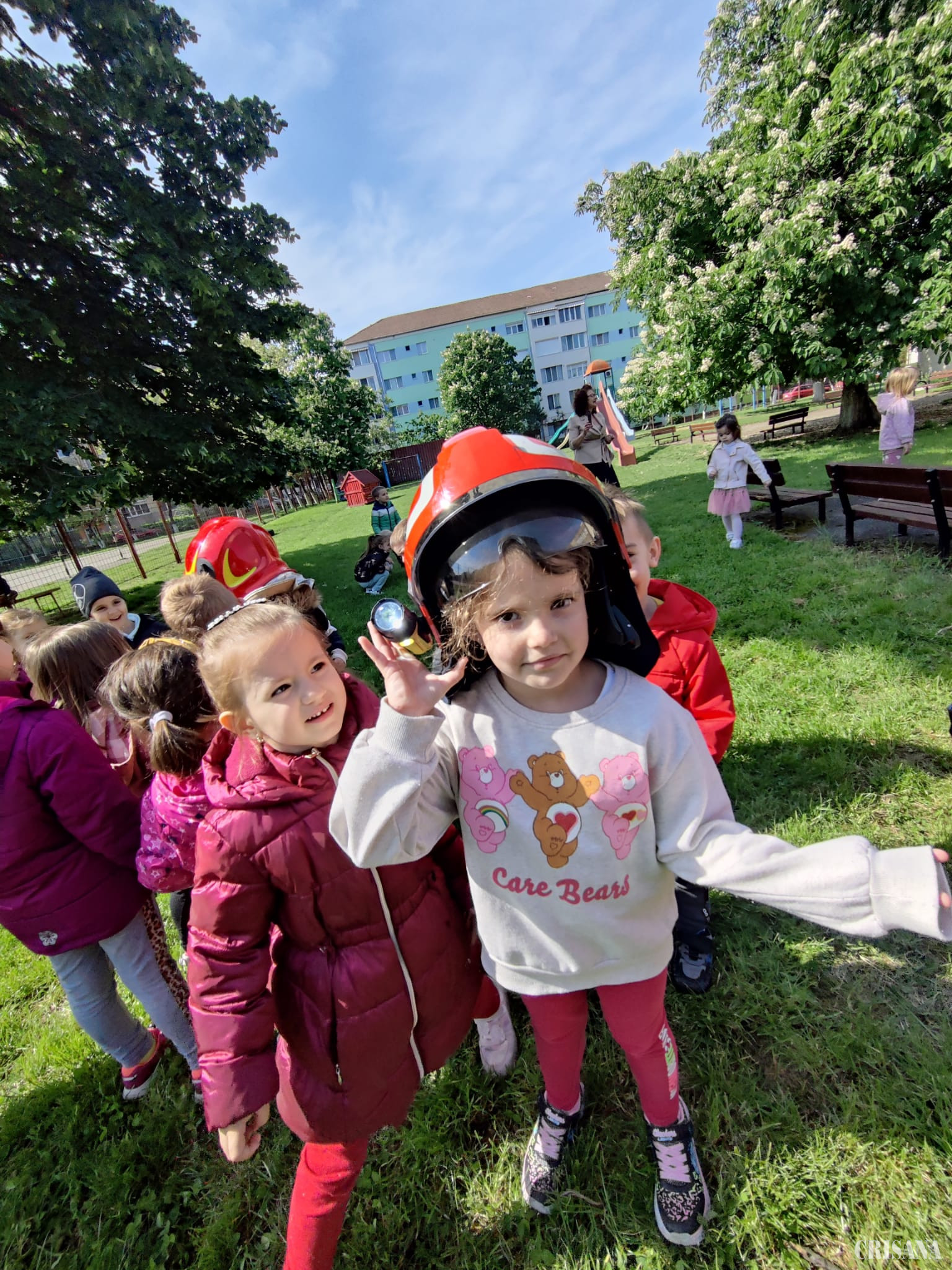 Așa s-a întâmplat și în acest an, când, pe lângă activitățile desfășurate în incinta grădiniței, prichindeii au avut parte și de mici excursii. Prima ieșire a fost chiar în prima zi a săptămânii, prichindeii fiind duși la Oradea Shopping City, unde au vizionat, unii poate pentru prima oară, un film animat și anume faimosul Kung Fu Panda. A doua zi copiii au putut intra în rolul unui bucătar – Master chef pentru o zi, cu ajutorul domnului chef Marius Bot, de la Hotel Nevis, care le-a acaparat atenția și le-a dezvăluit câteva secrete despre alimentația gustoasă și sănătoasă. La sfârșit copilașii, îmbrăcați în costumul de chef, au degustat mult apreciatele wafe cu fructe. După degustare, spre marea bucurie a prichindeilor, în curtea grădiniței a sosit o autospecială de pompieri. Pompierii i-au lăsat pe copii să „stingă focul” cu furtunul de apă, să poarte faimoasa cască pe cap și să urce în imensa mașină de pompieri.