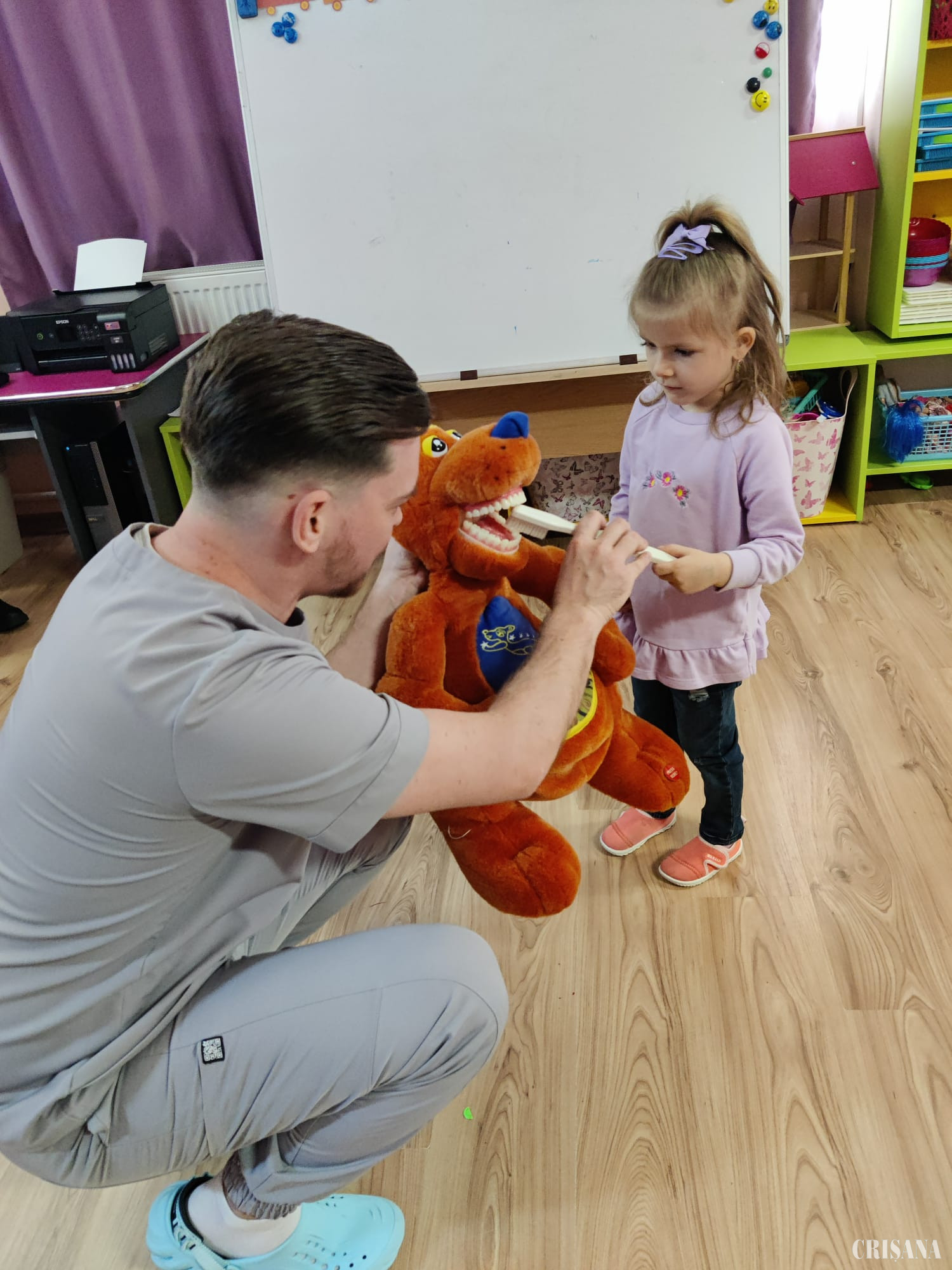 Miercuri – Stomatologul ne sfătuiește - a fost o zi dedicată igienei dinților. Cei mici, alături de doctorul stomatolog, Cata Laurențiu Adrian, au învățat despre alimentația sănătoasă, periajul corect al dințișorilor, precum și despre igiena dentară. Prichindeii au primit câte o diplomă, un tabel unde să bifeze de câte ori se spală pe dinți, precum și un lănțișor în formă de dinte, pe care îl pot folosi atunci când îi vizitează pentru prima oară Zâna Măseluță.