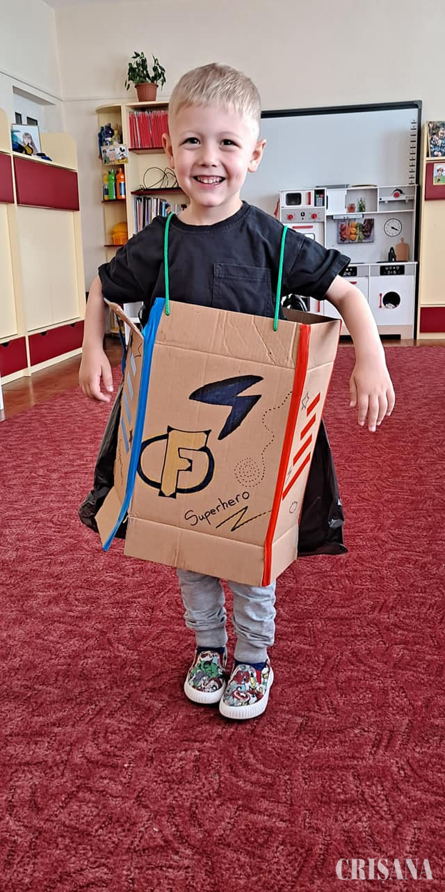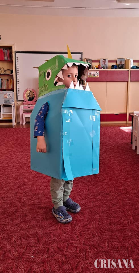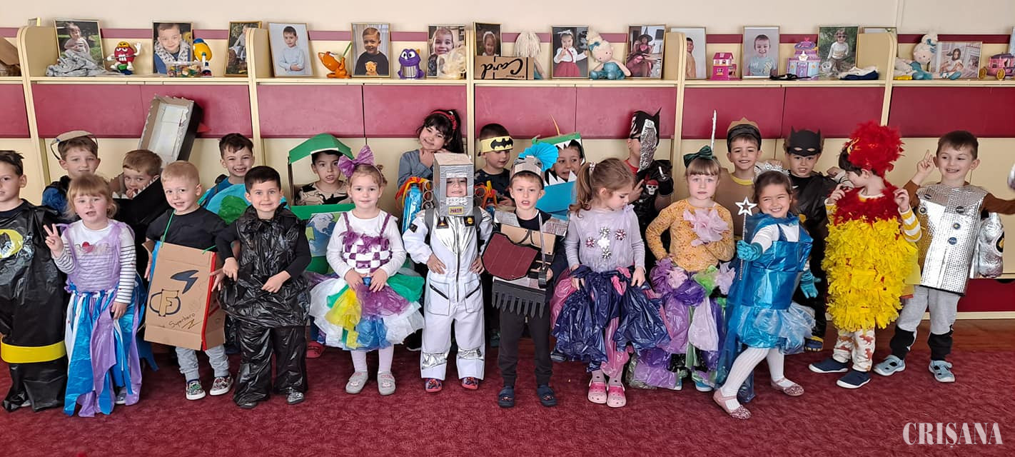 Copiii, coordonați de doamnele profesoare în educația timpurie, Teodora Negruț și Oana Ardelean, au fost încântați să-și etaleze costumele Eco, cu care au venit gata de acasă, unde, împreună cu familia, le-au confecționat cu multă imaginație și creativitate. Printre aceste materiale amintim cartonul, aluminiul, pungile de plastic, peturile și hârtia. Prin sala de grupă au defilat de la pirați la prințese cu rochițe frumos și armonios colorate, balauri imenși, astronauți NASA, costumații „Batman” care mai de care, cavaleri și supereroi, toate costumele fiind confecționate din materiale reciclabile. Scopul activității a fost formarea deprinderilor și abilităților Eco și a unei atitudini ecologice și responsabile pentru ocrotirea mediului înconjurător. Creativitatea și îndemânarea au mers mână în mână cu distracția, micuții fiind foarte încântați de creațiile lor vestimentare. Tot în cadrul „Săptămânii verzi” micuții au învățat ce înseamnă colectarea selectivă și au plantat flori în jardiniere, pe care le vor îngriji pe parcursul anului școlar.