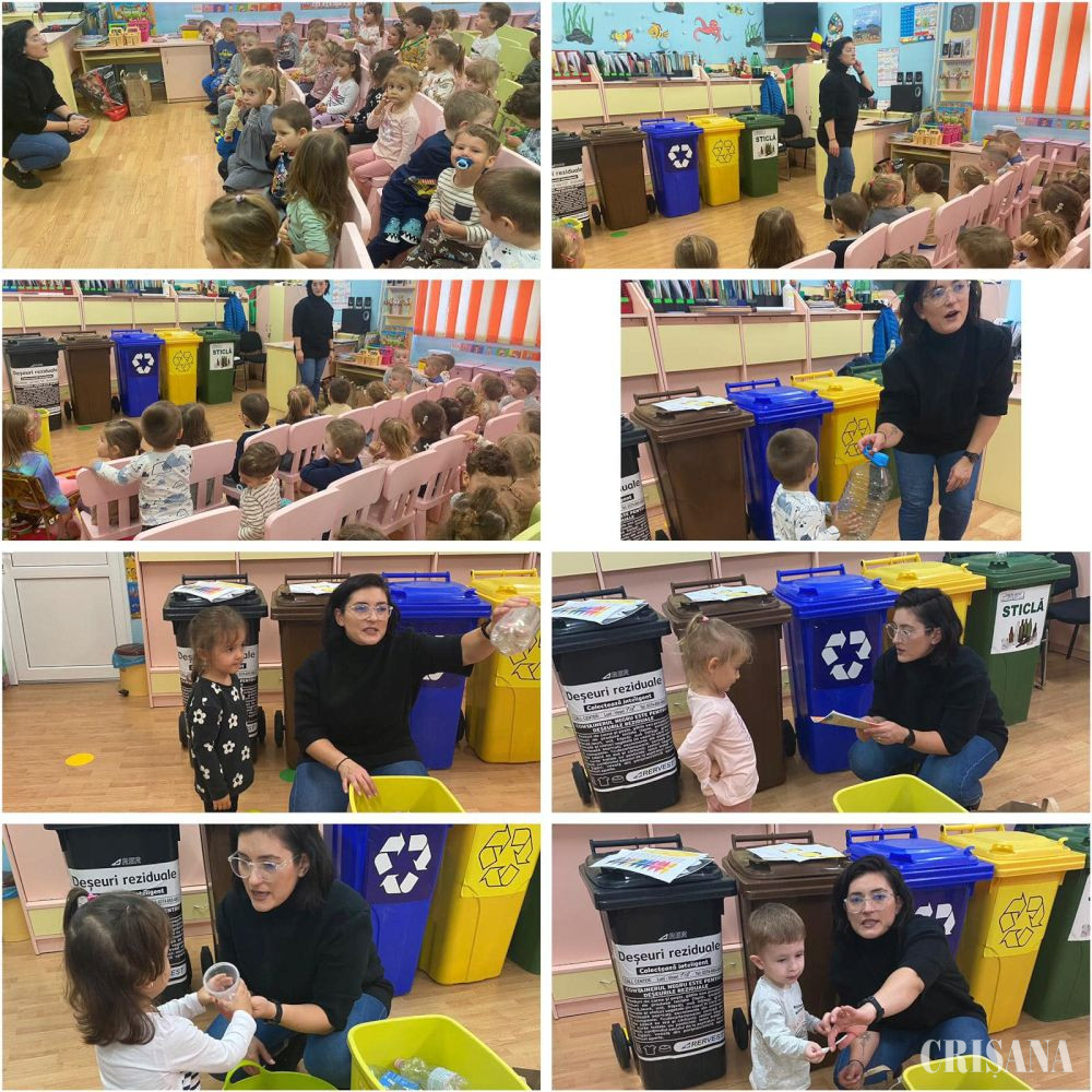 Micii apărători ai naturii au vizionat filmulețe în format Power Point - „Ziua reciclării”, „Deșeurile și mediul înconjurător”, „Totul despre reciclare”; au plantat flori și au îngrijit plantele din curtea grădiniței, au adunat frunze pe care le-au transformat într-un tablou frumos de toamnă, au făcut o plimbare observativă pe malul Crișului, unde au colectat deșeuri din parcul din preajmă, au vizitat Depozitul Ecologic, au făcut experimente - „Norul de ploaie”, „Ploaia”; jocuri distractive - „Plimbă balonul”, pictură suflând cu paiul - „Picături de ploaie”; jocuri didactice și de asociere - „Sortăm și reciclăm”, „Procesul de reciclare”; au făcut pictură pe pietre - „Frunza, pe un ochi de apă”, pictură pe scoarță de copac și pictură pe cofrag de ouă - „Omida, miriapodul vesel”, iar ca invitat special a fost un reprezentant de la RER, care prin activitatea practică - „Aruncăm sau selectăm” - copilașii au învățat să recicleze corect.